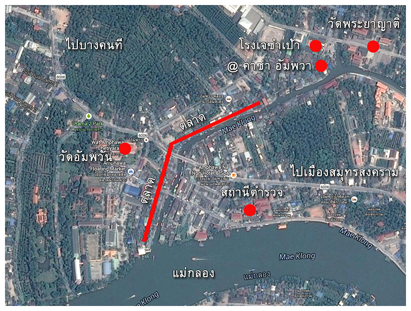 ตั้งแต่นั้นมา ผมมีโอกาสกลับไปเยือนอัมพวาหลายครั้ง ทุกครั้งคึกคักด้วยตลาดน้ำ คนมากมายมหาศาล แต่เมื่อใกล้ชิดอัมพวาที่ล้นทะลักด้วยผู้คนนานเข้า ความคิดผมกลับเปลี่ยนจากเดิมคืออยากเที่ยวอัมพวาวันธรรมดาซึ่งเงียบสงบดูบ้าง อยากทำความรู้จักกับคลองอัมพวาในแบบที่ผมควรรู้จักตั้งแต่คราวแรกแต่ดันหลงผิดคิดมองข้ามเสียอย่างนั้น และเมื่อมีโอกาสเลยต้องจัดสักหน่อย