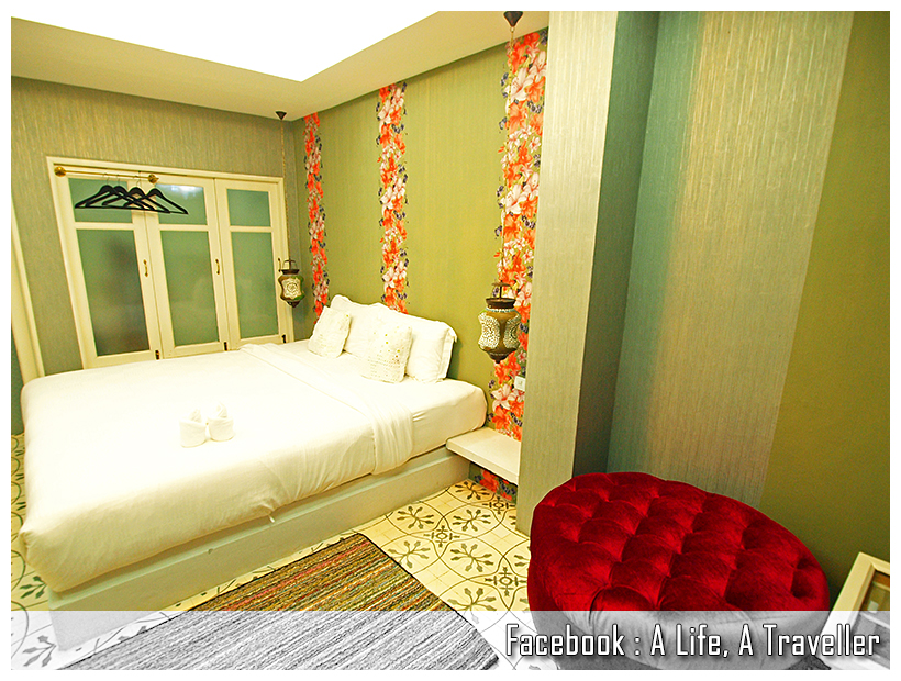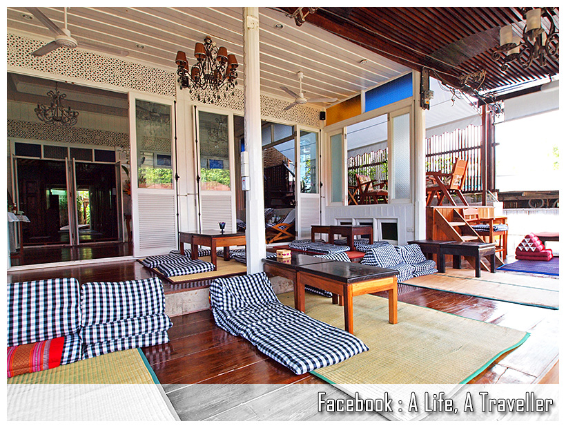 ปกติเดินทางแบบนี้ผมหาที่นอนราคาประหยัดเอาดาบหน้าสบายมาก แต่ด้วยทริปนี้มาพักผ่อนสบายๆ กับคุณผู้หญิง เลยต้องหาที่พักพอดูดีมีสกุลเสียหน่อย คุณเธอเป็นคนจัดแจงเลือกที่พักถูกใจชื่อ แอท คาซ่า อัมพวา ราคาวันธรรมดาคืนละ 850 บาท ผมยังไงก็ได้เพราะไม่มีสิทธิ์คัดค้านอยู่แล้ว (ฮา...)