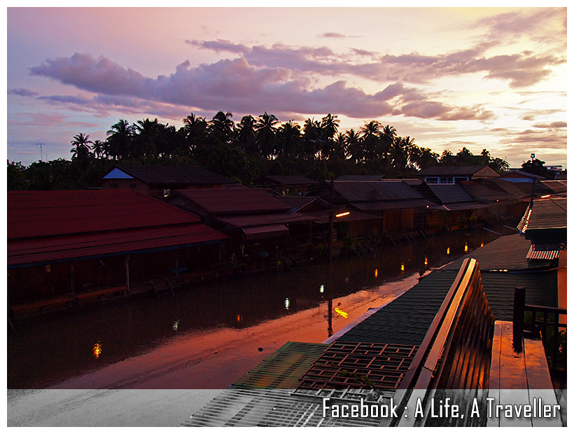 ตอนเย็นผมเตร็ดเตร่ริมน้ำและมาเลือกหาอะไรกันแถวสถานีตำรวจนั่นแหละ สอยข้าวต้มแห้งของโปรดมาสองชาม แต่ไม่ได้ถ่ายรูปไว้นะครับ เสิร์ฟปุ๊บซัดปั๊บทันที (ฮา...) ขากลับแวะซื้อพี่เสือดาวสองขวดมานั่งจิบริมคลอง ลมพัดเย็นสบาย นานทีจะมีเรือแล่นผ่านมาสักลำ เป็นวันธรรมดาที่เยี่ยมยอดเหลือเกิน บอกได้เลยว่าทุกคนที่นอนเล่นตรงระเบียงริมคลองค่ำวันนั้นมีความสุขทุกคน