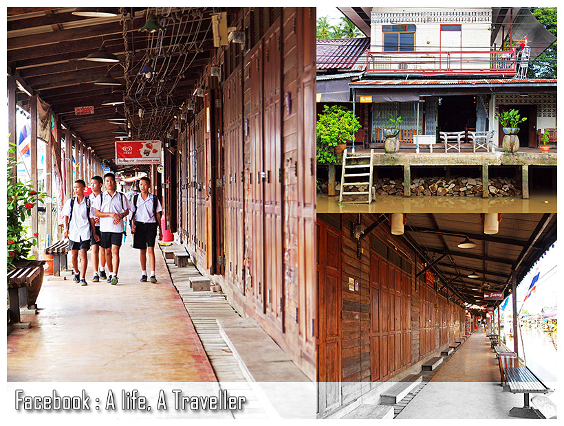 ทริปนี้มีความตั้งใจเดียวคือเดินถ่ายรูปเล่น ชมเรือนไม้ริมคลอง เป็นบรรยากาศที่ไม่มีให้เห็นในวันหยุด พอจัดแจงทุกอย่างพร้อมแล้วจึงเริ่มเดินเก็บรูปเรื่อยเปื่อยแบบสบายอารมณ์ บ้านเรือนเกือบทุกหลังปิดประตู มีแต่ร้านขายของชำเล็กน้อยเท่านั้นที่เปิดขาย เด็กนักเรียนเลิกเรียนเดินกลับบ้าน บ้างขี่จักรยาน เป็นภาพน่ารักดีครับ ผมเดินถึงแม่น้ำแม่กลองตรงสถานีตำรวจ เป็นแหล่งของกินที่มีขายของอยู่ตลอด