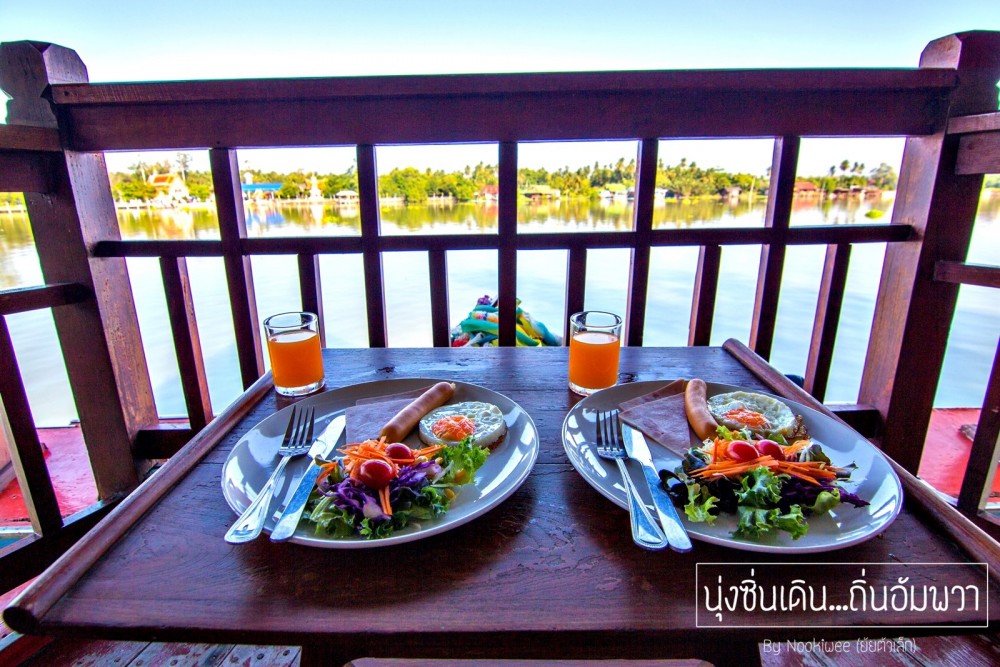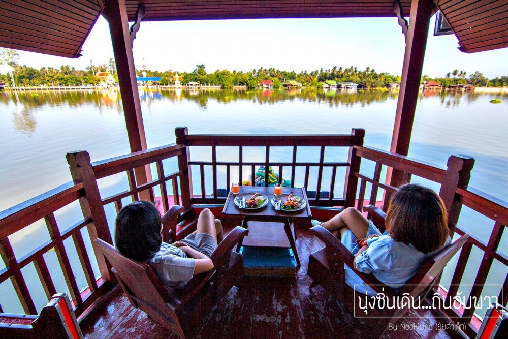 "อรุณสวัสดิ์...อัมพวา"  รีบตื่นเเต่เช้าเพื่อมารับเเสงเเรกที่ท่าน้ำ