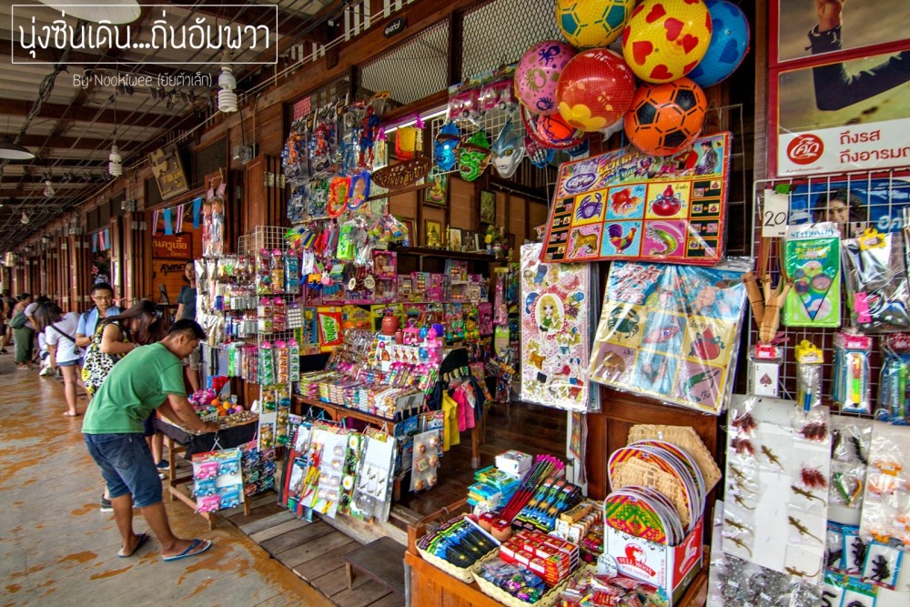 ตลาดน้ำอัมพวา หลายๆคนอาจจะมองว่า ก็เหมือนตลาดน้ำทั่วไปๆ...เเต่เราชอบอย่างนึงตรงที่ว่า ในมุมบางมุม มันยังคงไว้ซึ่งความเป็นชนบท ที่ทำให้เราระลึกย้อนถึงในช่วงวัยที่เรายังเป็นเด็ก  ขนมไข่จิ้งจก  หมากฝรั่งบุหรี่เเมวดำ หรือเเม้เเต่ของเล่นที่เราเคยเล่นเมื่อ 20 ปีที่เเล้ว 5555 นึกไม่ออกเลยจริงๆว่า ตอนนั้นเรามีความสุขมากเเค่ไหนกับความสุขเล็กๆของเด็กน้อย