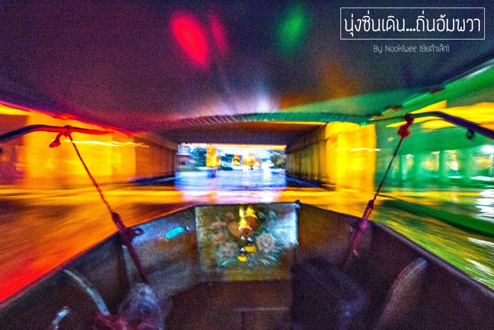 เดินกันเพลินๆ เเวะร้านนั้นร้านนี้ซื้ออาหารตุนไว้สำหรับเสบียงในค่ำคืนนี้ ก็ปาเวลาเกือบจะทุ่มตรงพอดีที่นัดหมายกับคนขับเรือไว้ ซึ่งเขาจะไปเราล่องเรือไปชมหิ่งห้อยอัมพวา ตอนเเรกยอมรับเลยว่าเราไม่ได้ตื่นเต้นอะไรกับการไปดูหิ่งห้อย เพราะหลายๆคนบอกว่า สมัยนี้ไม่มีเเล้วหิ่งห้อย บางก็ว่ามีน้อย บางก็ว่ามีเเต่ไฟคริสมาสต์ เเต่พอเรือเเล่นไปได้ช่วงระยะหนึ่ง คนขับเรือเขาดับเครื่อง เเล้วให้มองไปที่ต้นลำพู เริ่มเห็นหิ่งห้อยบินวนเวียนอยู่ใต้ต้น พอเข้ายิ่งเเล่นเรือออกไปเรื่อยๆ เริ่มมีหิ่งห้อยเยอะขึ้นๆ พวกเราก็อดคิดเสียไม่ได้ เค้าเอาไฟมาประดับหรือป่าว หลอกเราเเน่ๆ ไม่ใช่หิ่งห้อยจริงหรอก สนทนาขอสงสัยกันซะเสียงดังลั่น 555 คนขับเรือเขาคงลำคาญ...รีบชี้เเจงให้ฟังพร้อมพิสูจน์เลยว่า ผมจะพิสูจน์ให้ดู ว่าเป็นหิ่งห้อยจริงหรือไม่จริง เขาค่อยๆร่องเรือไปใกล้ๆต้นลำพู เเล้วควักน้ำใส่ต้นลำพู โอ้โห!!! ของจริงแฮะ หิ่งห้อยบินหนีกันเป็นเเถวเลย..หลังจากได้รับการพิสูจน์เเล้ว ความตื่นเต้นก็กลับมา พวกเราไปช่วงเดือนสิงหาคม เค้าบอกว่าช่วงนี้เป็นช่วงที่มีหิ่งห้อยเยอะที่สุด เพราะว่าเป็นช่วงผสมพันธุ์ของมัน จริงค่ะ เยอะมากจริงๆ (แต่ไม่ได้ถ่ายรูปไว้นะคะ คือถ่ายนะ แต่ถ่ายไม่เห็นค่ะ เพราะต้องใช้ความมืดจริงๆ)