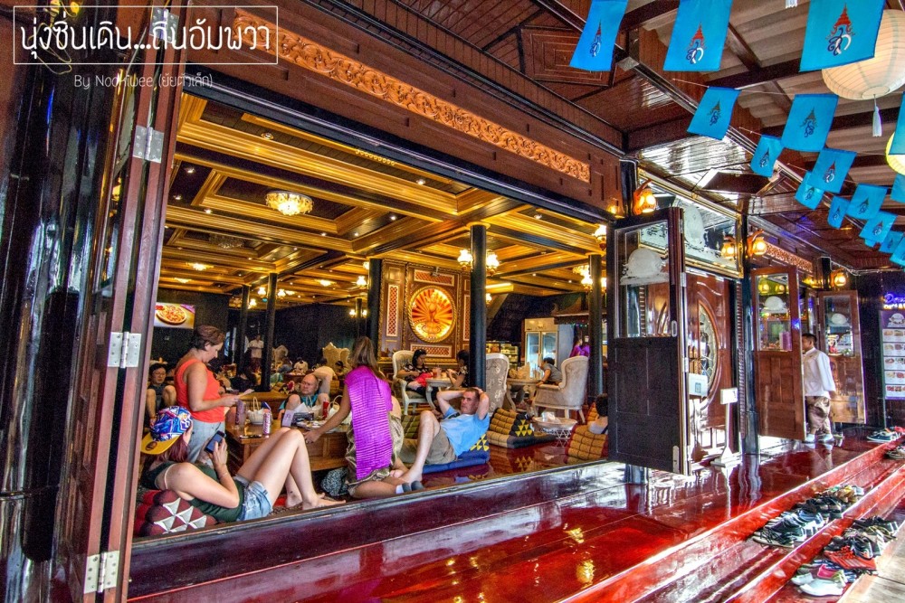 บางร้านก็เป็นนายทุนที่มาซื้อที่บริเวณนี้เเล้วเปิดร้านอาหาร เปิดที่พักให้นักท่องเที่ยว คือเรามองว่า ตามยุคสมัย มันก็ต้องเปลี่ยนเเปลงไป เป็นการผสมผสานระหว่าง 2 ยุค ที่เป็นเสน่ห์อีกเเบบหนึ่ง ร้านภวัตส้มตำไก่ย่าง นี้เป็นร้านที่ขายดิบขายดี...อันนี้ได้ข้อมูล มาจากคนขับเรือนำเที่ยว เขาเเนะนำมา ก็เลยจัดให้รู้เรื่องสักหน่อย ^^