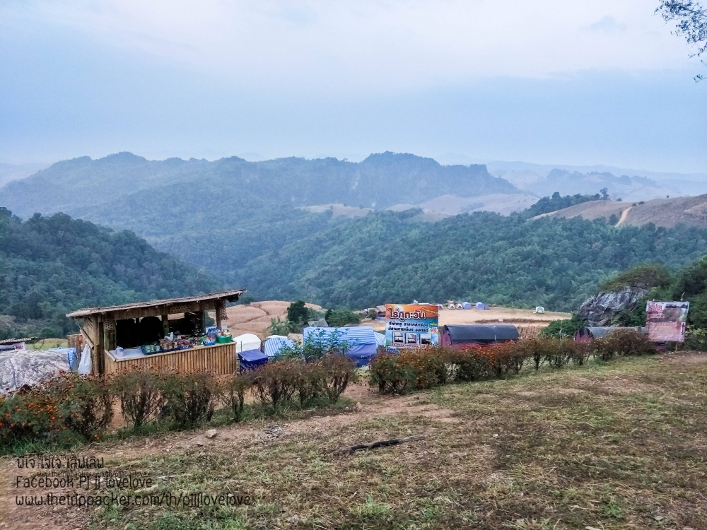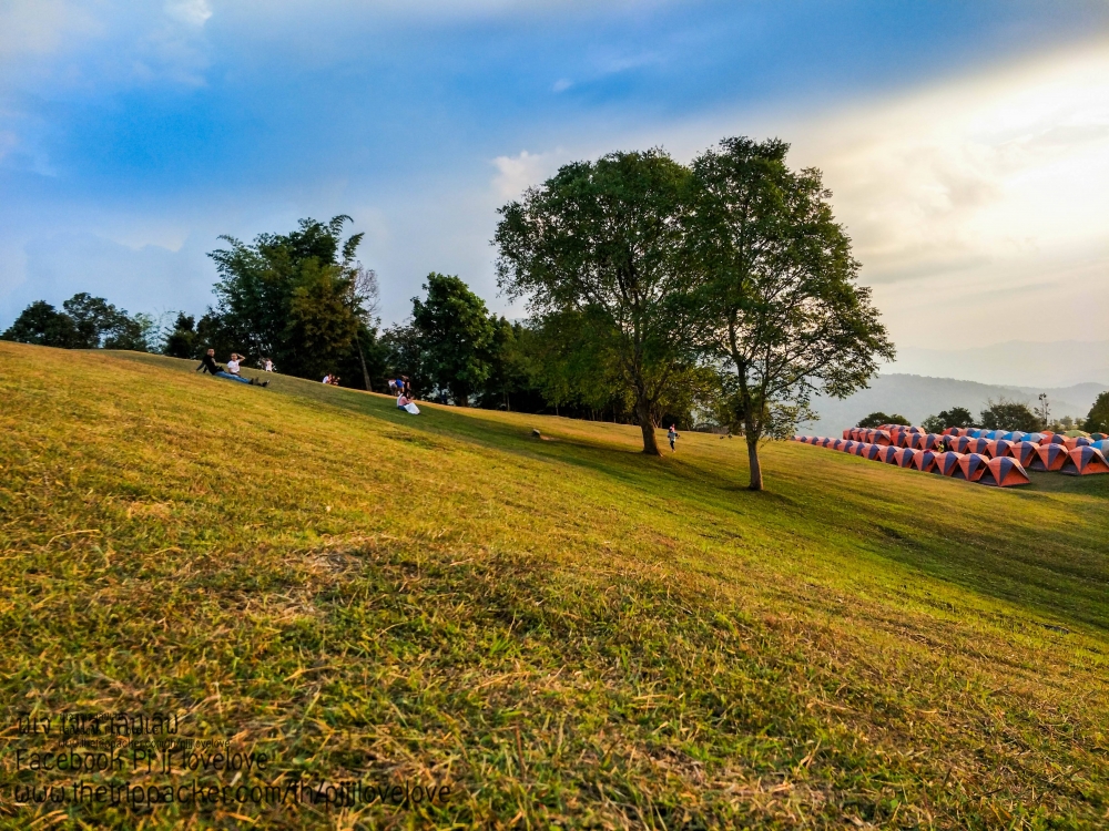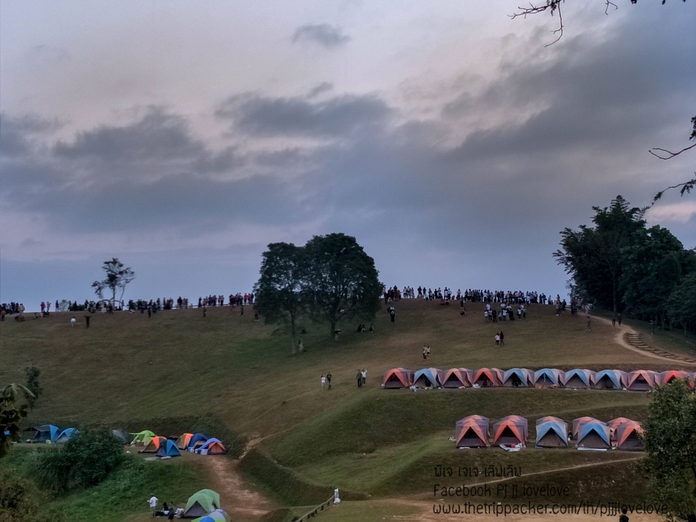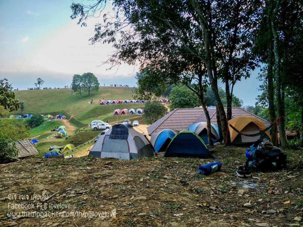 บรรยากาศพระอาทิตย์กำลังตกดิน กับผู้คนที่มาท่องเที่ยว บ้างก็ทยอยจัดข้าวของ ในเต้นท์และเตรียมทำอาหารกินกัน บางคนก็ขึ้นมานั่งชมวิวธรรมชาติ นั่งคุยกันเป็นคู่ๆ เป็นกลุ่มๆ หลายสำเนียง หลายภาษา มีทั้งอีสาน เหนือ และใต้