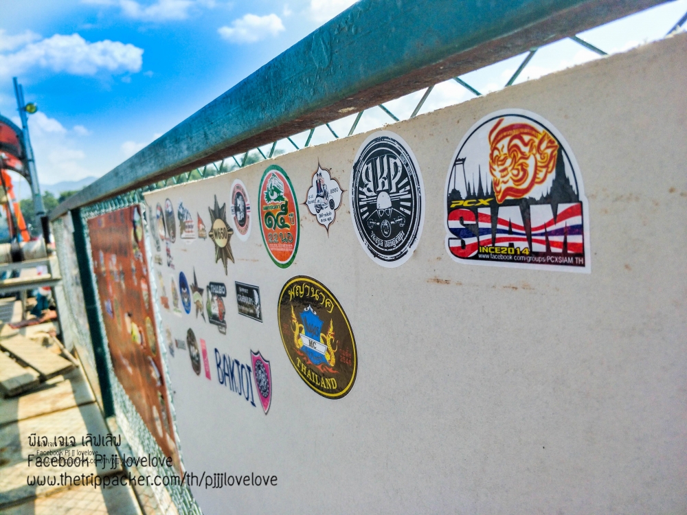 พอเรือแพ ได้ออกไปสักพัก เราก็ไม่พลาดที่จะหามุมสวยๆ วิวสวยๆ มาถ่ายภาพสวยๆ ให้ชม ก็ดันไปเห็นบรรดาเหล่าสติ๊กเกอร์ ของคาราวาน หรือกลุ่มท่องเที่ยวด้วยมอเตอร์ไซต์ ทำให้นึกขึ้นได้ ว่าเราก็มีสติ๊กเกอร์ที่เหล่าพี่ๆ ยักษ์สยามเคยให้มา ตอนเราส่งข้อความขอไป ...ขออนุญาตินำไปติดไว้เพื่อเป็นอณุสรณ์ของการเดินทางนะครับ