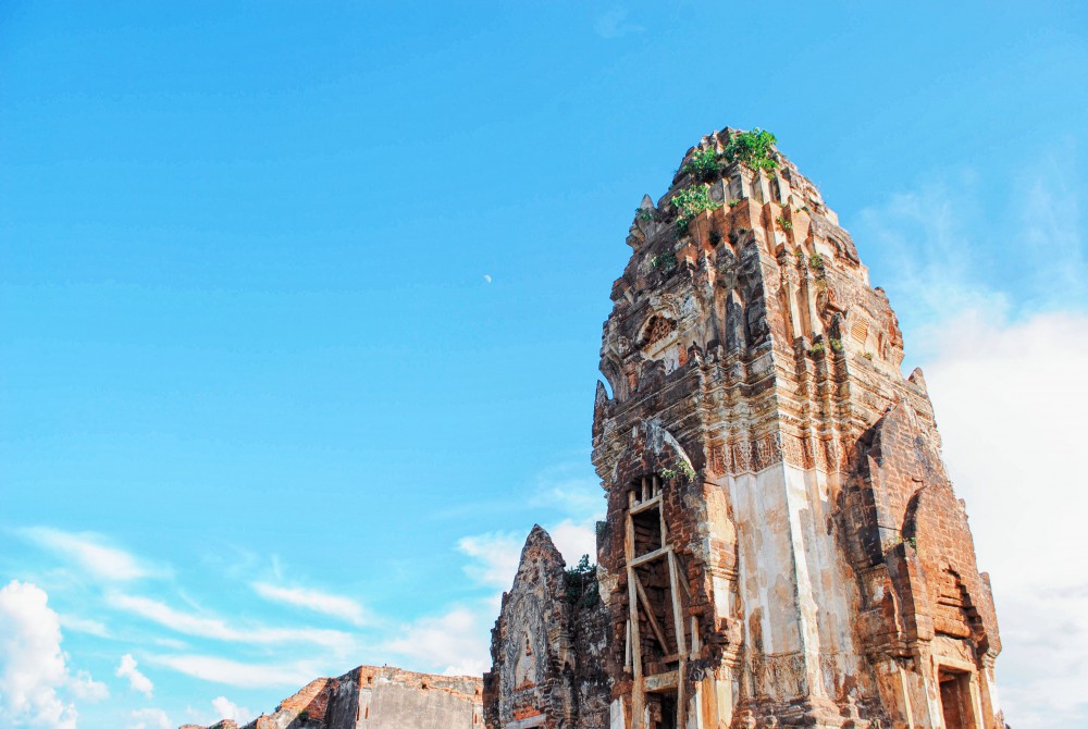 พระปรางค์ประธาน ห่างไปทางทิศตะวันตกของวิหารหลวงเป็นพระปรางค์องค์ใหญ่ที่สุดในลพบุรี สร้างเป็นพุทธเจดีย์ องค์ปรางค์ก่อด้วยศิลาแลงโบกปูน มีเครื่องประดับลวดลายเป็นพระพุทธรูปและพุทธประวัติที่ลายปูนปั้นหน้าบันพระปรางค์แสดงถึงอิทธิพลของพุทธศาสนา นิกายมหายานค่ะ