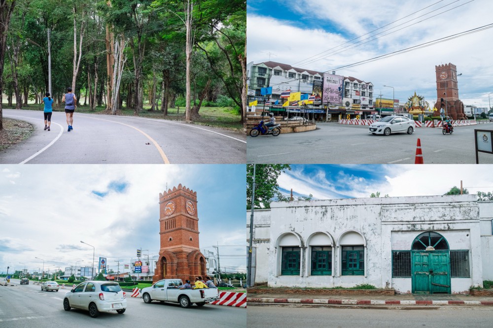 ตอนเย็นๆ ที่อุทยานจะมีคนมาวิ่งออกกำลังกายกันเยอะเลยครับ ผมขับรถกลับที่พักผ่านหนึ่งในแลนด์มาร์คหอนาฬิกาด้วยครับ
