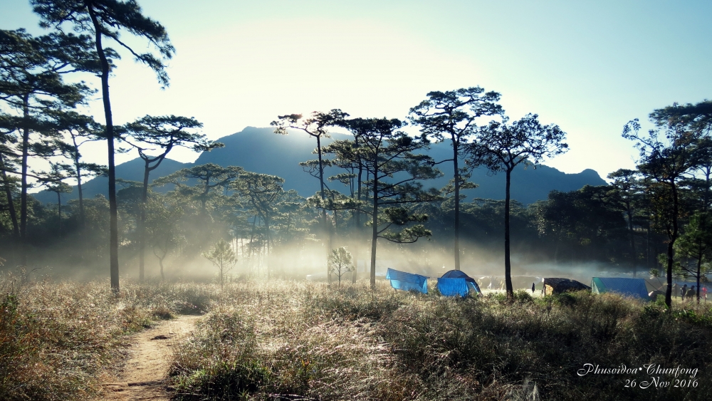 วันนี้มีหมอกสวยมากครับ...ผมตื่นแต่เช้า (ปกติ การตื่นเช้าไม่ใช่ทาง) แล้วเดินไปทางที่พักเจ้าหน้าที่ เพื่อจะไปหาดูพระอาทิตย์ขึ้น...