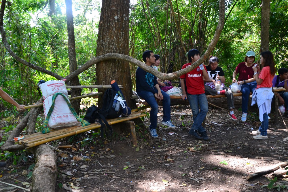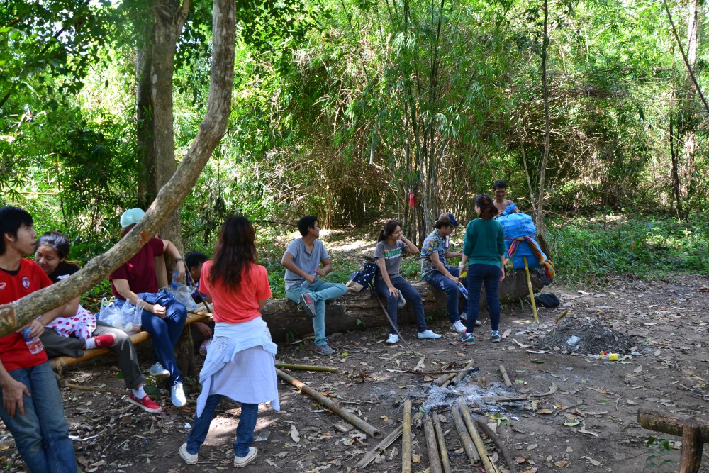 ถึงจุดแวะพักกินข้าวแล้วครับ หยิบไก่ย่างที่ซื้อมาจากตลาด กำลังจะกิน เจอกลุ่มพี่ๆกำลังนั่งพักกันอยู่(จุดนี้แหละที่เรียกว่า คำทักทายเป็นประตูสู่ความสัมพันธ์) จึกทักพี่เขาไป