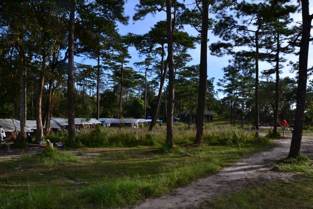 ระหว่างกางเต็นต์ เหมือนมีสายตาหลายๆคู่จ้องมองมาที่ผม 555 กลุ่มพวกพี่เขานั่นเอง ผมเลือกกาเต็นไกล้กลุ่มพี่เขาเพราเขาชวน(ดีเลยจะด้ไม่เหงา55) จะได้ช่วยอะไรพวกเขาได้บ้าง ซึ่งลูกหาบที่กลุ่มพี่เขาเลือกแบกของยังมาไม่ถึงบนลานสน "รอไปนะพี่ 555"