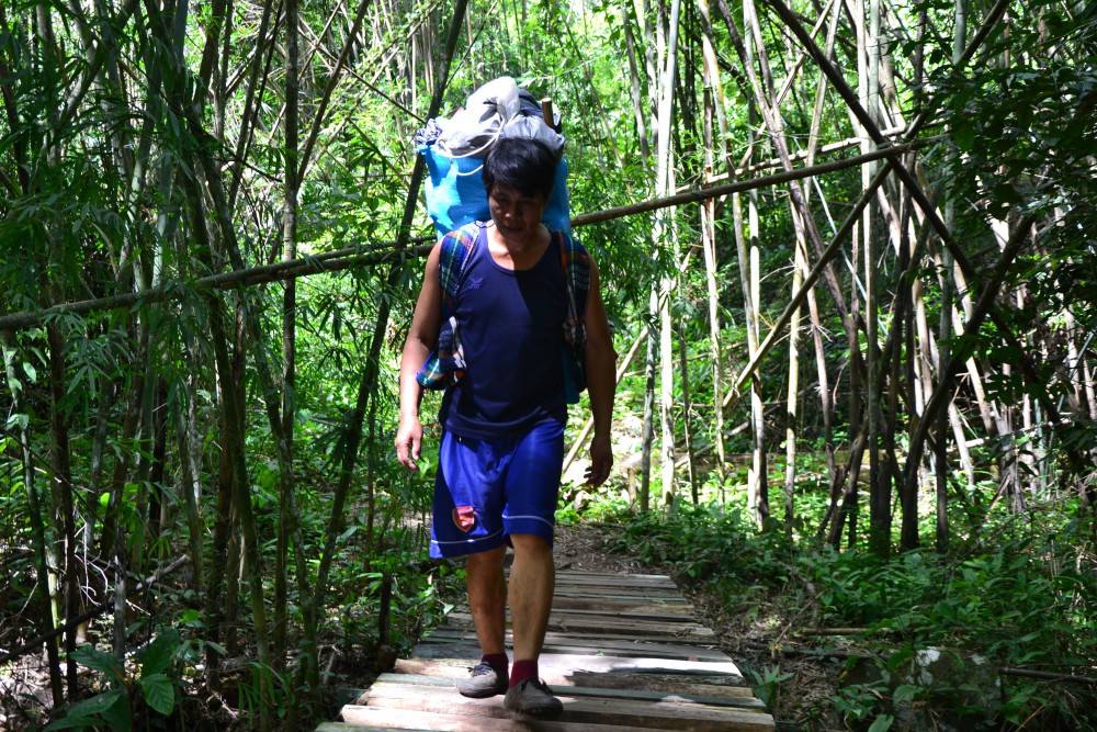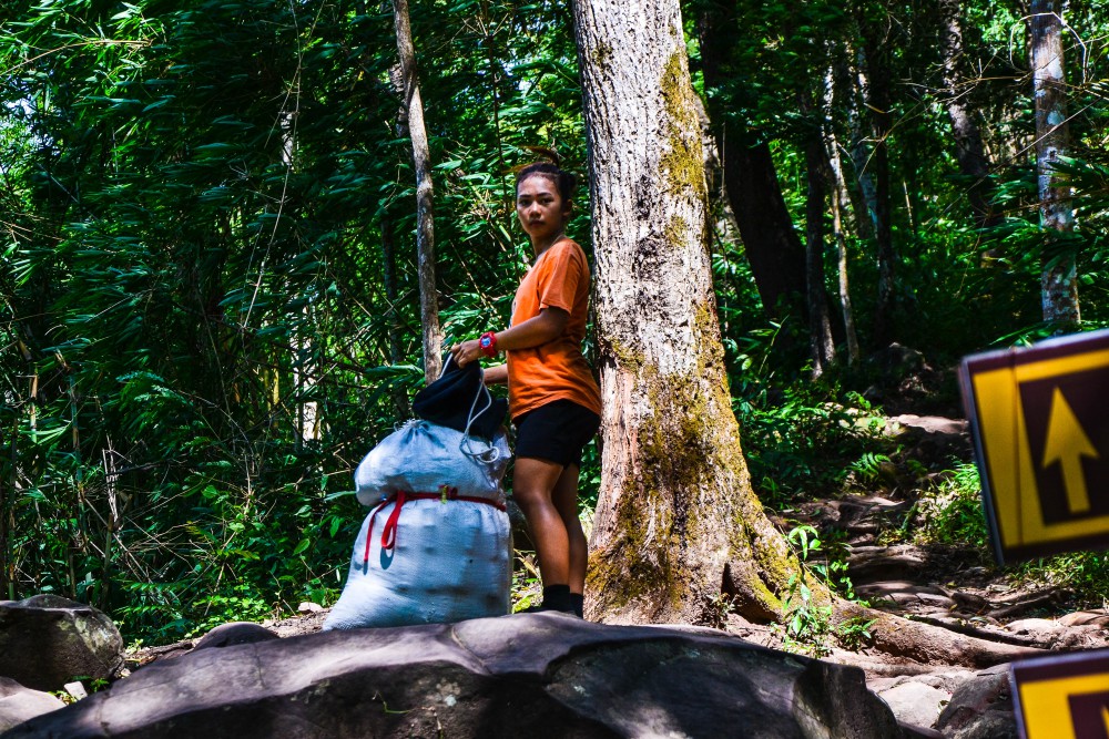 ระหว่างทางเดินไปเจอน้องลูกหาบผู้หญิงตัวเล็กๆ คนนึง ที่ผมตกใจคือเธอแบกของหนักมากก 20 กิโล ผมขอซูฮกน้องเขาจริงๆ ผมยอมเลย555