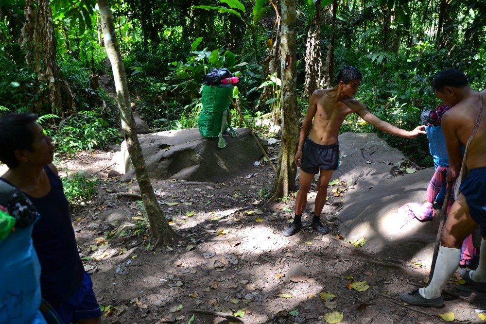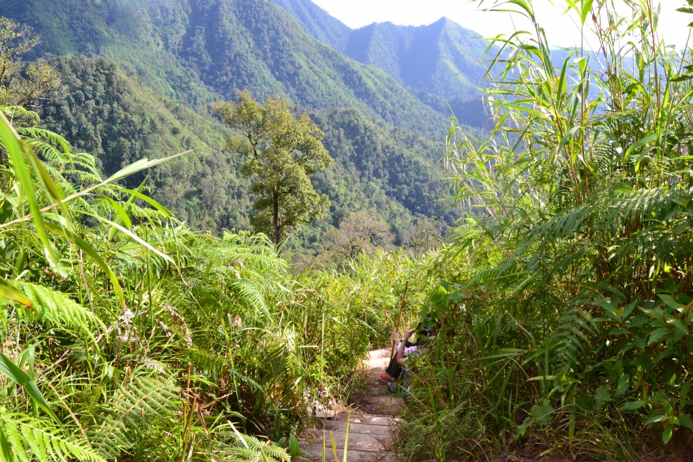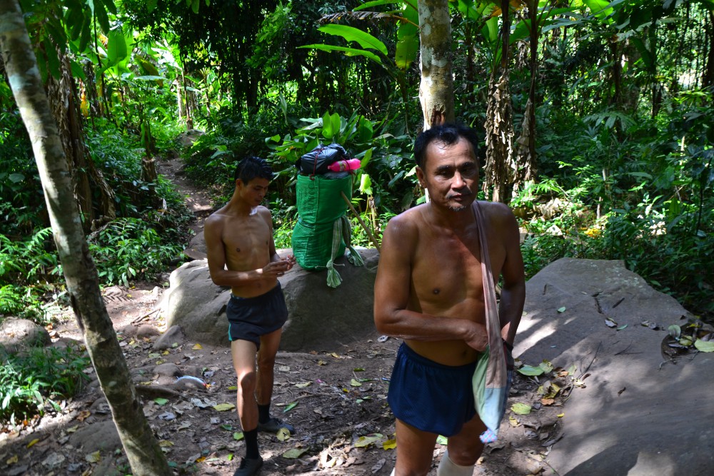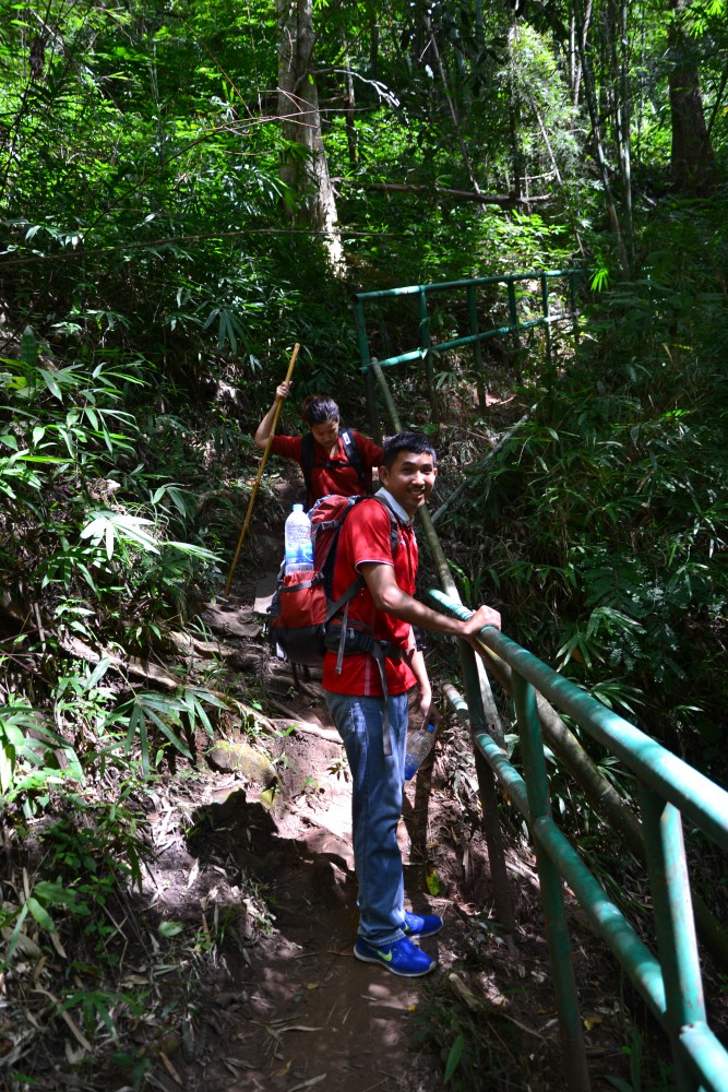เดินไปเจอทางชันก่อนจะถึงเนินแรก เจอเด็กน้อยคนนึงเป็นลูกหาบ ตัวเล็กมากถามอะไรแล้วไม่ค่อยตอบ ส่งสัยเหนื่อย55 พอรู้ว่าแบกมา 15 กิโล โหว พอกะผมแบกเลยวุ้ย บอกน้องสู้ๆโว้ย น้องเขาก็เดินจากไป ส่วนผมก็เดินตามน้องเขาไปติดๆ