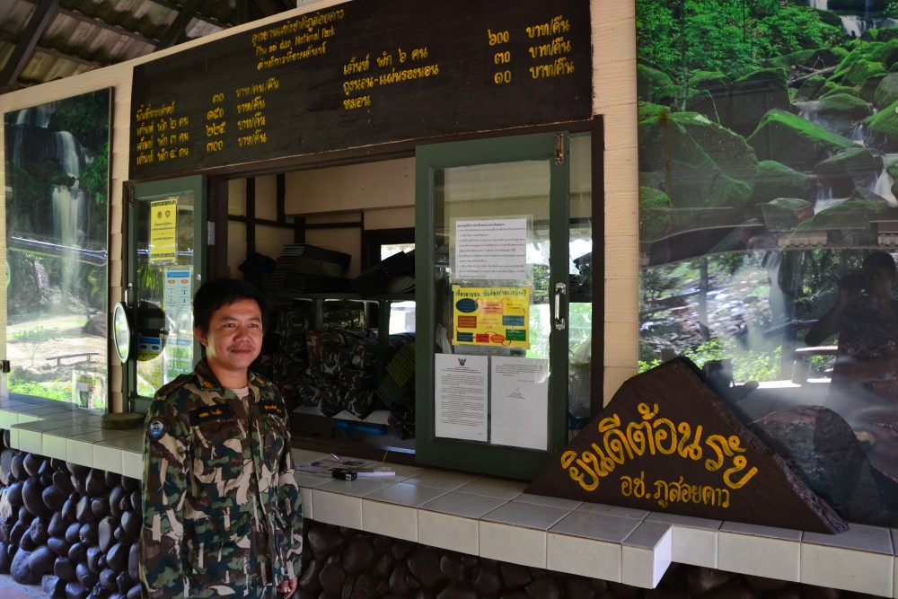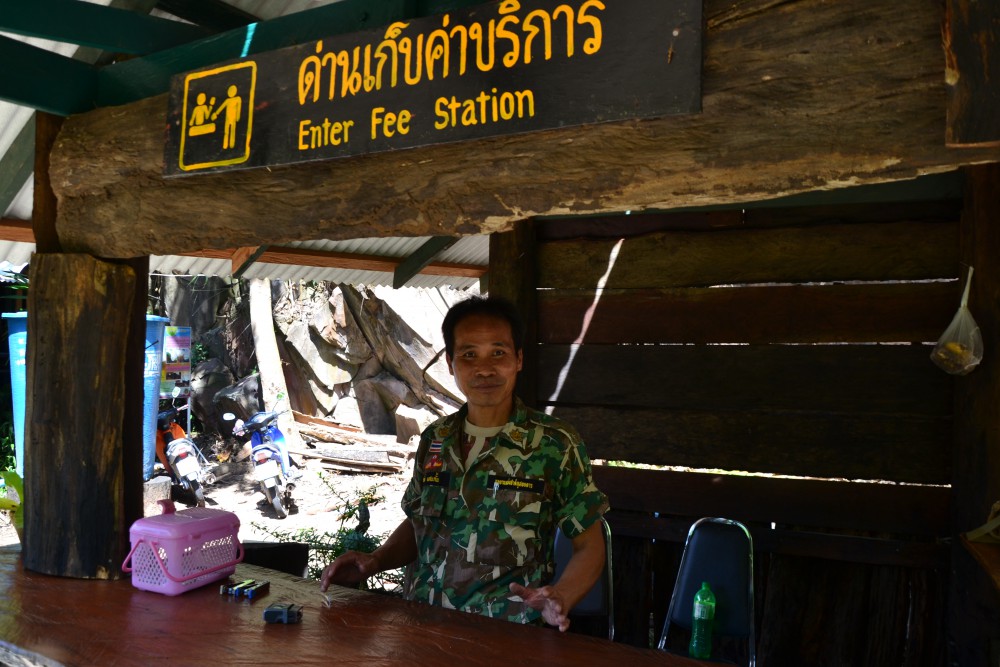 ผมยื่นบัตรให้เขา(บัตรนี้จะได้ตอนที่เราจ่ายค่าเข้าอุทยาน)
