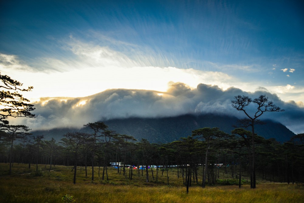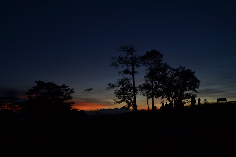 ตี 2 !! ผมสะดุ้งตื่น ฝนตกครับบบบบบ!! เฮ้ยยย ฝนมันจะตกได้ยังไงวะ เช็กสภาพอากาศก่อนมา กรมอุตุก็บอกว่าช่วงนี้ไม่ค่อยมีฝน ดันมาตกวันที่ขึ้นไปซะงั้น 555 ตีลีตาเหลือกออกไปเก็บรองเท้ากับเสื้อผ้าที่ตากไว้ โชกดีเพราะฝนกำลังตกเลยไม่เปียกมาก กลับเข้าเต็นต์ได้ ผ่านไป 5 นาที ฝนหยุด!! เฮ้ย สวรรค์แกล้งรึเปล่าวะเนี่ย นี่มันฝนไล่หมาชัดๆ55 ช่างมัน ซุกตัวในถุงนอนต่อ ช่วงที่กำลังจะหลับ เสียงของลมพัดมาครับ ไม่ใช่เบาๆนะครับ คือแรงมากกกก เสียงเหมือนพายุพัดเลย หล่อนสิครับ อากาศว่าหนาวแล้ว หนาวลงไปอีก 55 ทะลุถุงนอนกันเลยทีเดียว แล้วเรื่องที่จะไปดูพระอาทิตย์ลืมไปได้เลย เพราะเมฆมาหนามาก ไม่เห็นดาวเลย ล่มครับล่มแล้ว แสงแรกของพรุ่งนี้ 555