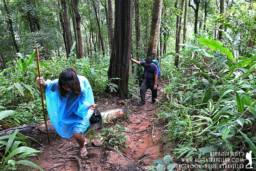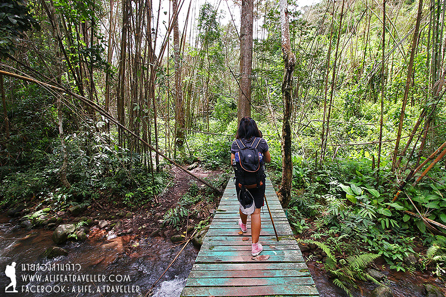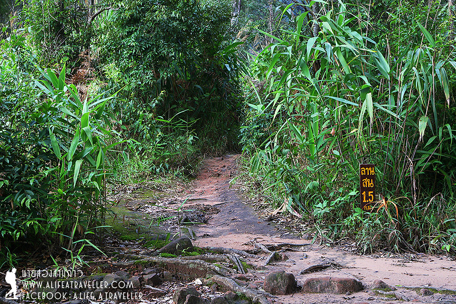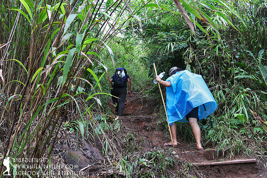 การเดินช่วงแรกเป็นทางเลียบน้ำตกภูสอยดาว มีขึ้นบ้างลงบ้างแต่ไม่หนักหนา เราเดินไปพักไปคุยเฮฮากันไป ไม่มีใครรู้สึกว่ายากลำบาก... แต่นั่นเพราะของจริงยังไม่มาถึงต่างหากล่ะ