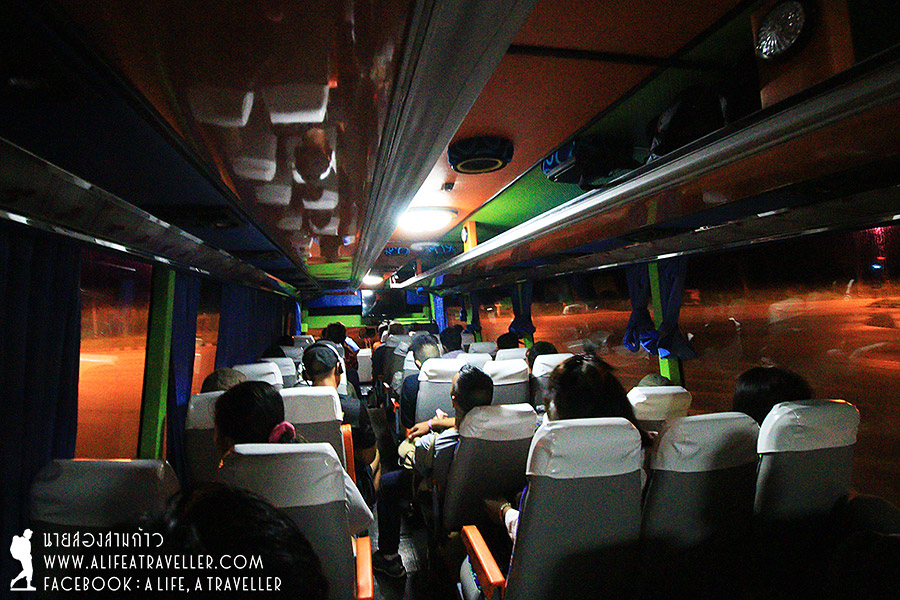 เลือกเดินทางกันวันธรรมดาพุธถึงศุกร์ พบกันที่ บขส.พิษณุโลก ประมาณตีสาม เราบังเอิญเจอหนุ่มนักเรียนนายร้อยห้าคนจะไปภูสอยดาวเหมือนกัน เลยตกลงว่าควรรวมกันหารถเหมาที่อำเภอชาติตระการ โดยขั้นแรกต้องนั่งรถโดยสาร พิษณุโลก-ชาติตระการ วิ่งเที่ยวแรกประมาณตีห้า ค่าตั๋ว 84 บาท รถ ป.2 ติดแอร์ ขึ้นปุ๊บก็หลับผล็อยได้เลย