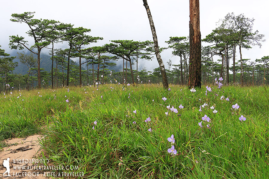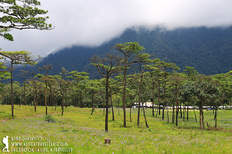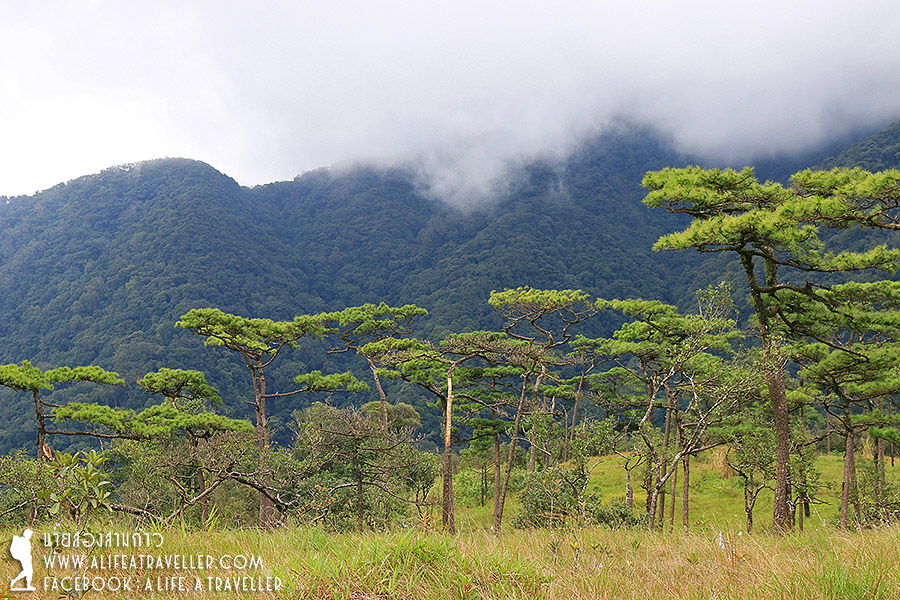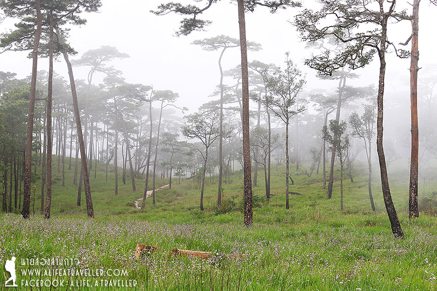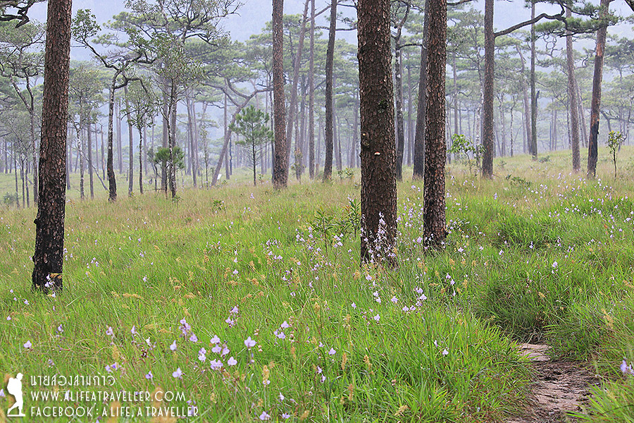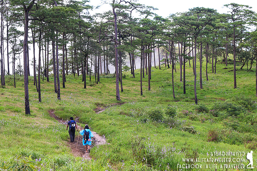 เราสามารถขึ้นไปพิชิตเนิน 2,100 ได้นะครับแต่ไม่ใช่ช่วงนี้ เพราะอุทยานฯ เปิดให้ขึ้นเฉพาะหน้าแล้งตั้งแต่เดือนพฤศจิกายนเป็นต้นไป และจำเป็นต้องมีเจ้าหน้าที่หรือลูกหาบนำทาง มีค่าใช้จ่ายเพิ่มเติมต่างหาก คราวนี้เราตั้งใจมาดูดอกหงอนนาคเลยต้องฝากเนิน 2,100 ไว้ก่อน