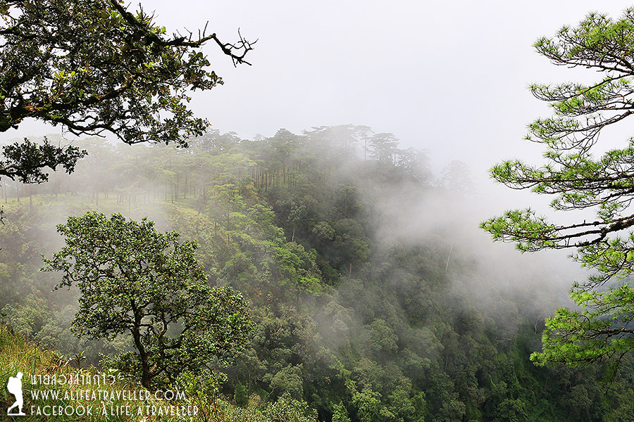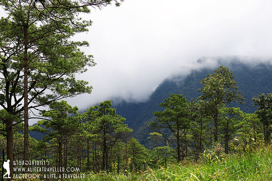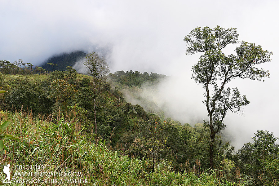 แต่พอขึ้นมาสูงเราก็เริ่มเห็นวิวสวย หมอกขาวปกคลุมทั่วทั้งขุนเขา ภาพตรงหน้าช่วยให้คลายเหนื่อยได้ไม่น้อย