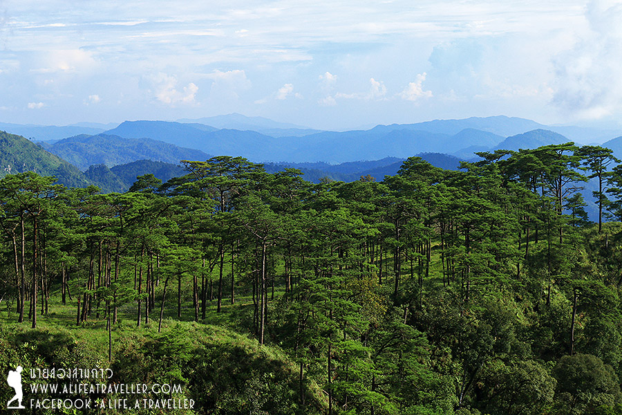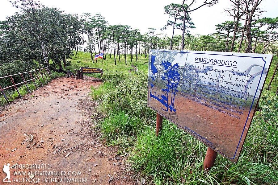 พ้นจากเนินส่งญาติก็มาถึงเนินปราบเซียน ต่อด้วยเนินป่าก่อ และเนินเสือโคร่ง อ่านป้ายบอกความสูงแล้วรู้สึกเหนื่อยใช่เล่น เพราะบนเนินเสือโคร่งซึ่งเป็นเนินที่สี่ เรายังอยู่ที่ความสูงแค่ 1,150 เมตร แต่ลานสนบนภูสอยดาวสูงกว่า 1,600 เมตร