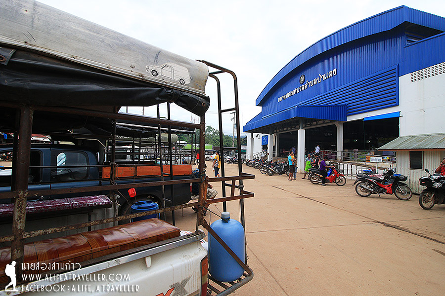 รถวิ่งผ่านอำเภอนครไทย เข้าสู่อำเภอชาติตระการ ผมมีข้อมูลมาว่าให้ไปต่อรถสองแถวที่ตลาดเทศบาลตำบลป่าแดง หรือหารถเหมาแถวนั้น แต่หลังออกจาก บขส.นครไทย แป๊บเดียว เจ๊กระเป๋ารถก็แนะนำว่าพวกเรามีกันแปดคนเหมารถไปเลยสะดวกที่สุด แถมเจ๊แกยกโทรศัพท์ติดต่อรถให้เราทันทีแบบไม่ถงไม่ถามสักคำไม่มีการตกลงราคาอะไรทั้งนั้น เรามองหน้ากันเหรอหราว่าจะโดนฟันหัวแบะหรือเปล่านะ (ฮา...)