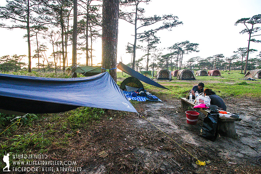 - กางเต็นท์ก็ดี นอนเปลก็ได้ แต่พื้นที่กางเต็นท์มีมากกว่าแนวต้นไม้ที่ใช้ผูกเปล ควรมีฟลายชีตดีๆ ป้องกันด้วยเพราะฝนที่ภูสอยดาวไม่เคยปราณีใคร