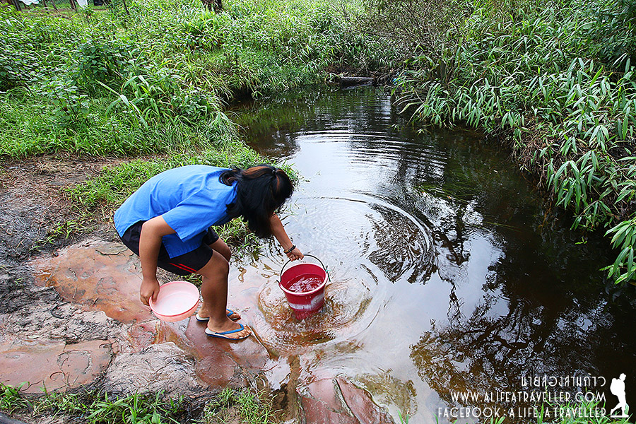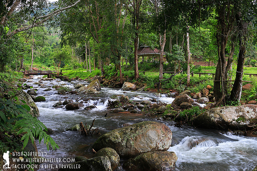 ลำธารที่เราจะไปตักน้ำมาใช้เข้าห้องน้ำอยู่หลังห้องน้ำนั่นแหละ ส่วนน้ำกินจะมีถังเก็บน้ำฝนอยู่ตรงบ้านพักเจ้าหน้าที่ เราไปกรอกได้ตลอดเวลา แนะนำว่าถ้าไม่ลำบากเกินไปนำมาต้มสักหน่อยก็ดี