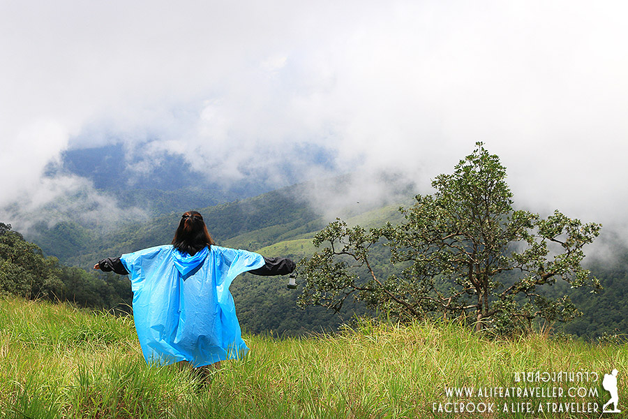 คืนนั้นฝนกระหน่ำลมโหมหนักช่วงตีหนึ่ง ผมนอนเปลไม่มีปัญหาแต่น้องที่นอนเต็นท์นี่สิ ตื่นมาพร้อมกับน้ำท่วม (แต่ยังนอนอยู่ได้ไม่รู้สึกรู้สานะ ฮา...) มีเต็นท์ของอุทยานฯ สองหลังปลิวละลิ่วไปกองอยู่กลางทุ่งดอกหงอนนาค ส่วนนักท่องเที่ยวกลุ่มอื่นทุลักทุเลพอกัน