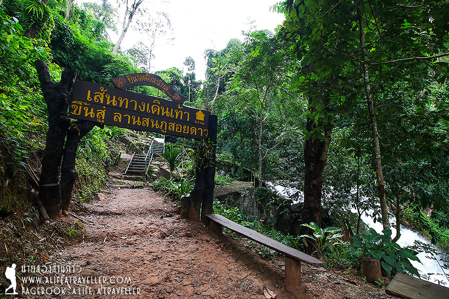 แหม... แต่ยังไม่ทันเริ่มต้นเดินผมก็หมดเวลาไปกับการถ่ายน้ำตกภูสอยดาวเสียแล้ว น้ำกำลังเยอะสวยเชียว