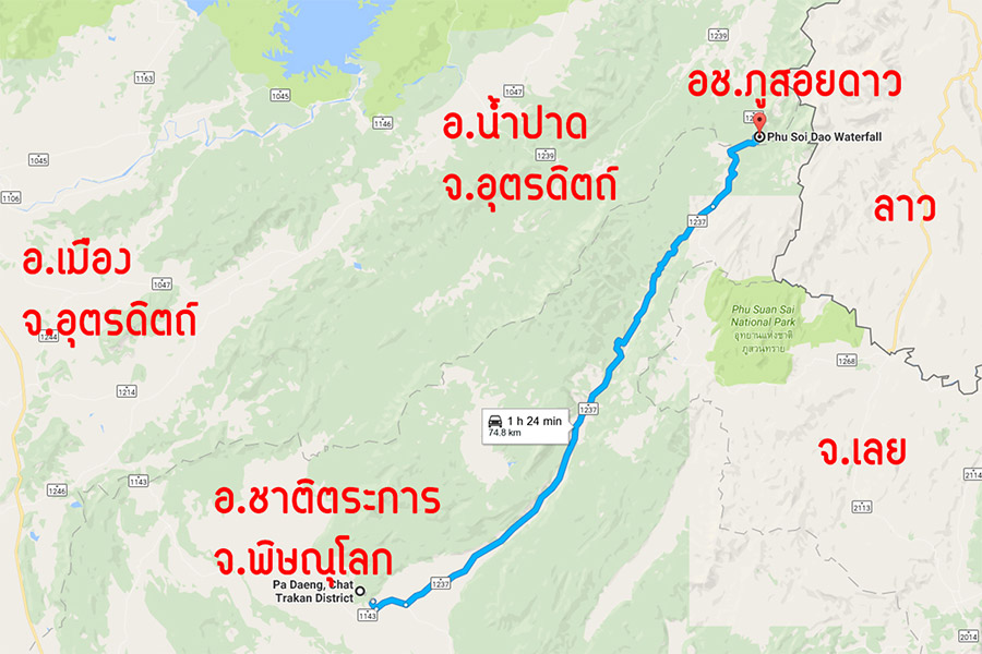 ทริปของเรามีสามคนครับ เลือกเดินทางกันวันธรรมดาพุธถึงศุกร์ เพื่อหลีกเลี่ยงนักท่องเที่ยวแออัดในวันหยุด จุดนัดพบคือ บขส.พิษณุโลก เพราะแม้ตามที่อยู่ทางราชการ อุทยานแห่งชาติภูสอยดาวจะอยู่ในเขตอำเภอน้ำปาด อุตรดิตถ์ ทว่าที่ตั้งจริงๆ คาบเกี่ยวกินพื้นที่ร่วมกับอำเภอชาติตระการ พิษณุโลก และสะดวกกว่าในการเดินทางจากฝั่งชาติตระการ เป็นเส้นทางตามนิยมของนักท่องเที่ยวทั่วไป