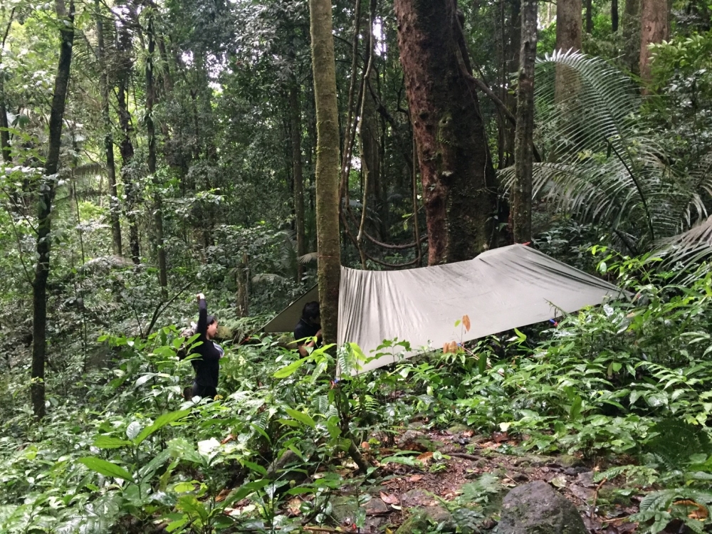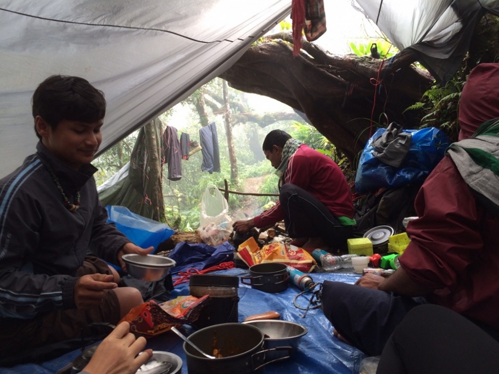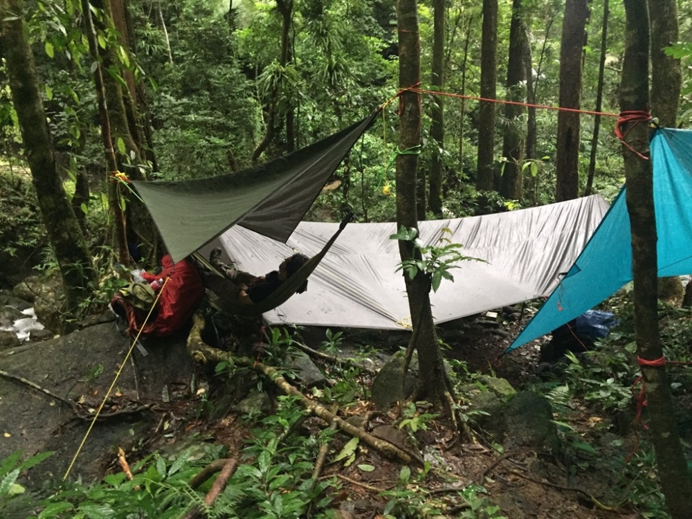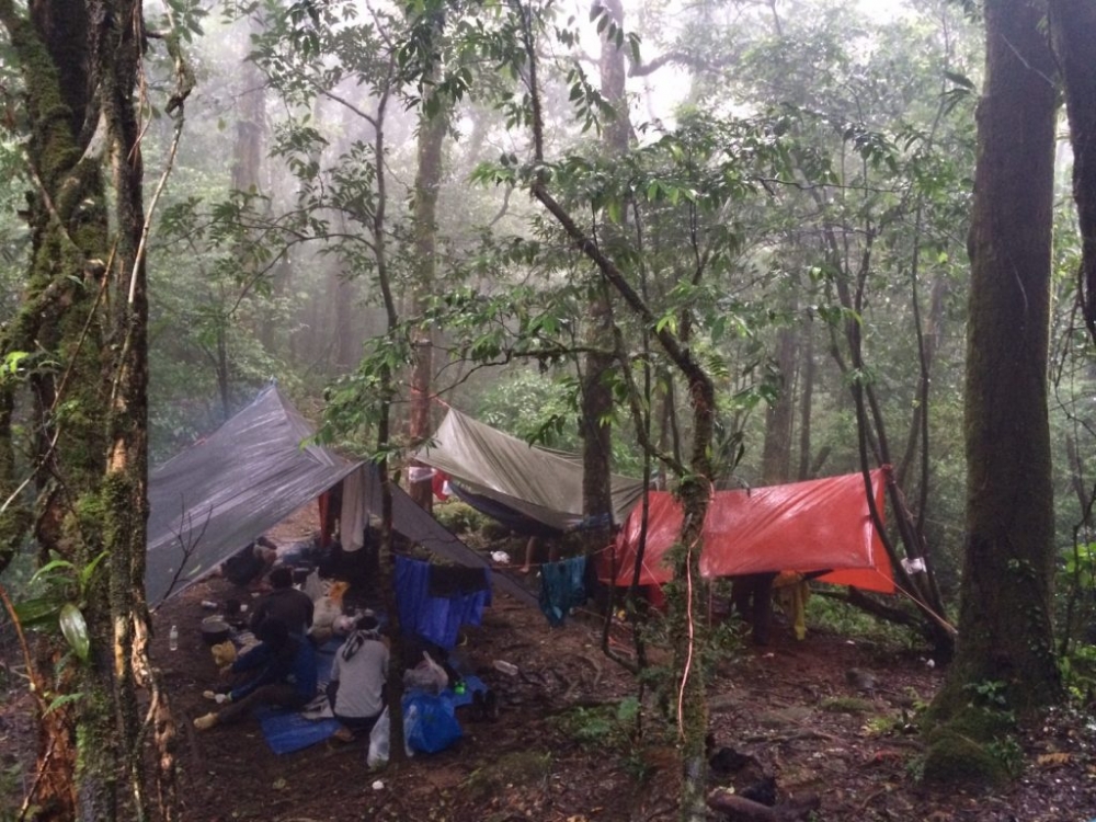 แคมป์วันนี้ต้องลงไปข้างๆสันเขาเพื่อหลบหลมแรง เราแยกนอนเปลไปบางส่วน อีกบางส่วนและผมนอนกับพื้นที่แคมป์ เพราะพื้นที่นอนไม่เพียงพอ