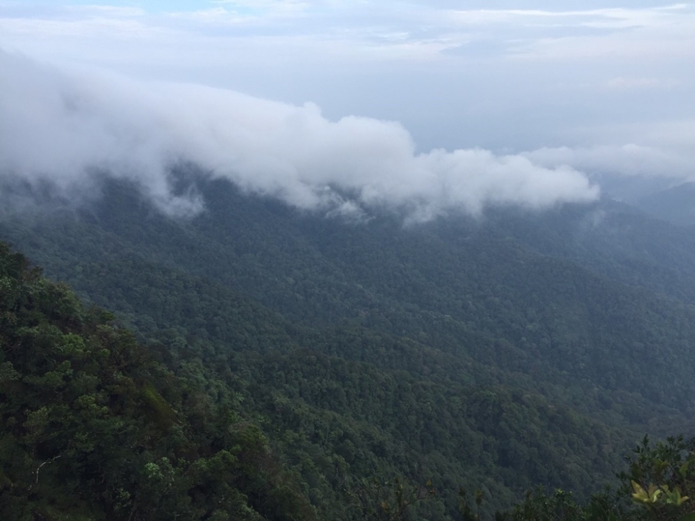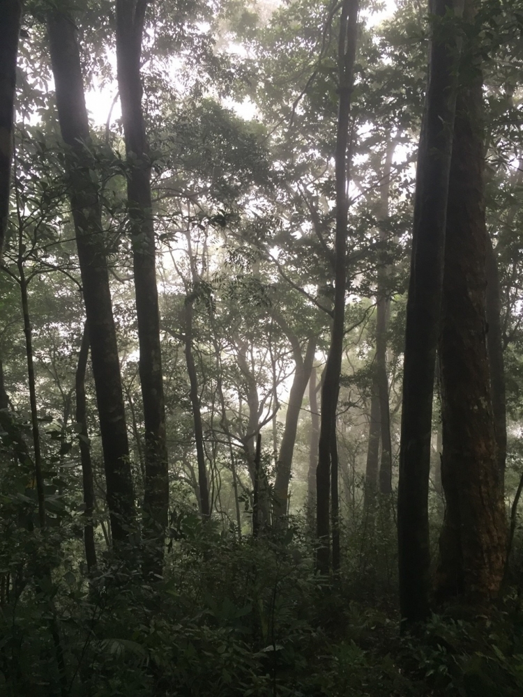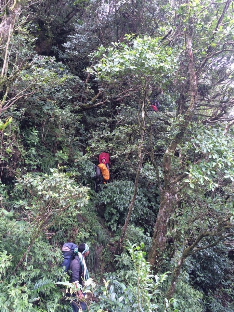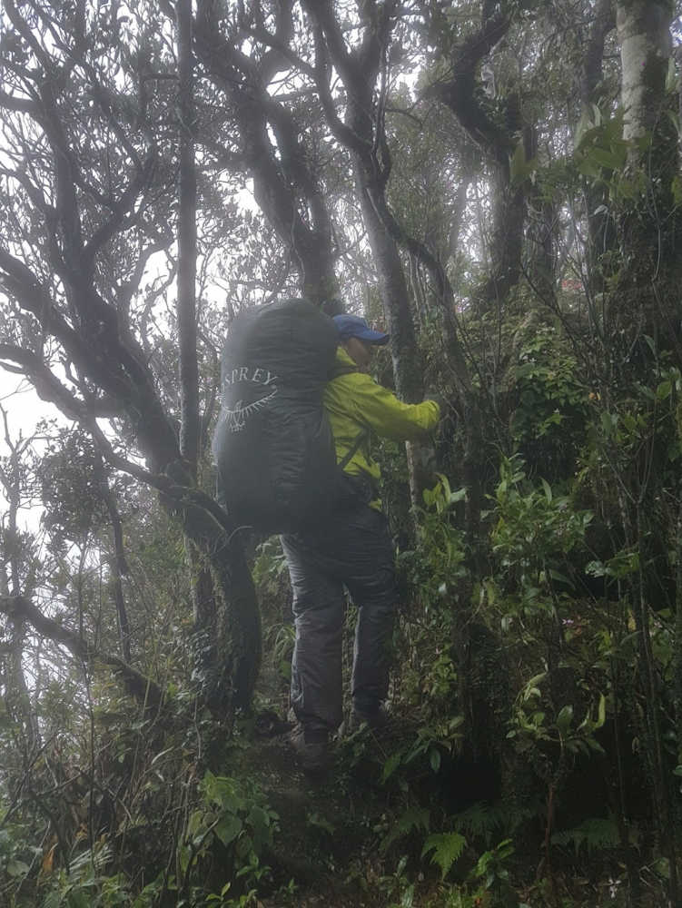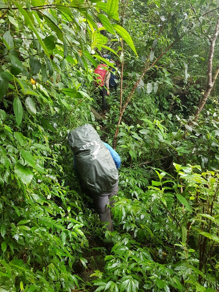 เส้นทางเดิน ร่มรื่นมาก และพวกเราเริ่มจะชินกับความรก ฝนยังคงตกอยู่ มีลื่นบ้างเป็นบางครั้ง ทางไม่ได้ชันแบบวันที่สอง แต่ก็เป็นทางขึ้นไปเรื่อยๆ ทากไม่เยอะนัก โดยจุดไฮไลท์ของวันนี้ คือป่าโบราณ ซึ่งมีต้นไม้ใหญ่ๆ มอส เฟิร์น ดอกไม้ และกล้วยไม้ ขึ้นเต็มไปหมด ชุ่มชื่น สวยมาก
