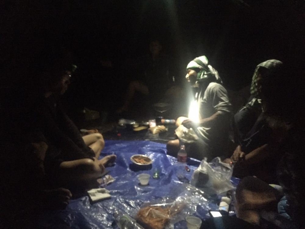 (แคมป์คืนที่สาม แบ่งกันนอนพื้นและนอนเปลเพราะที่ไม่พอ – ภาพโดย ยุ้ย)