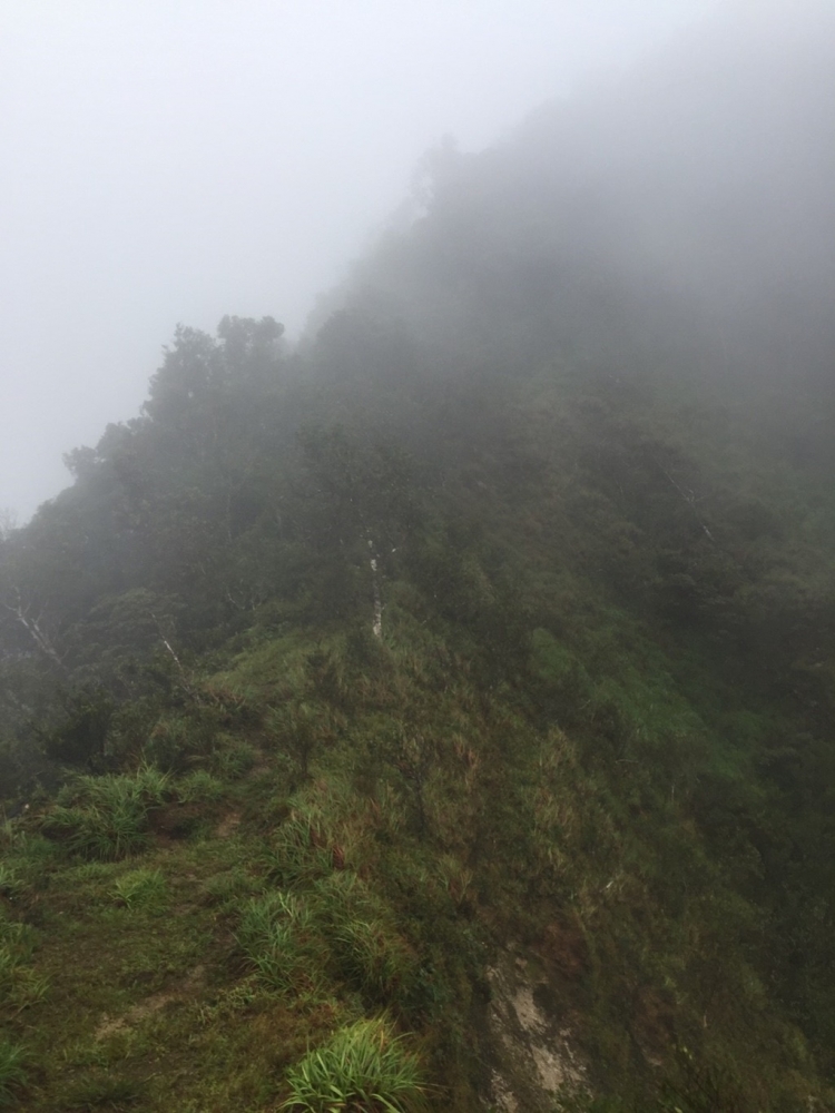 (ถึงยอดฝามี 1,654m แล้วครับ มองไม่เห็นวิวอะไรเลย ฝนตก หมอกหนามาก)