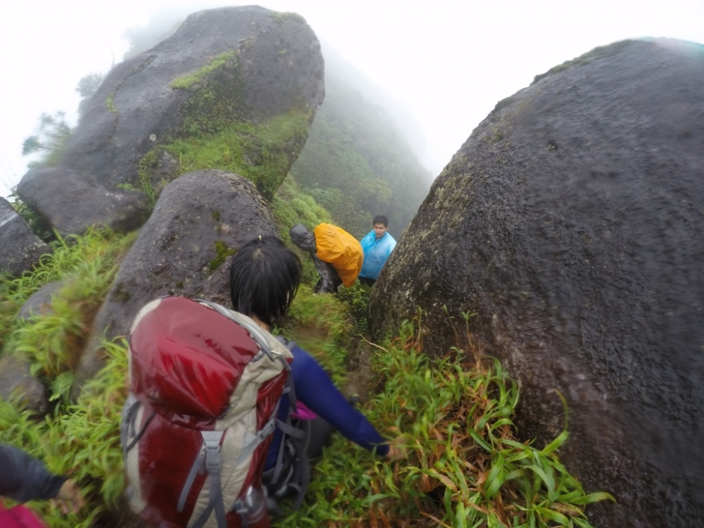 (ขึ้นหิน เป็นจุดชมวิวแห่งหนึ่งก่อนถึงยอดฝามี แต่เจอฝน มองไม่เห็นอะไรเลย)