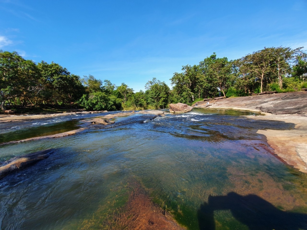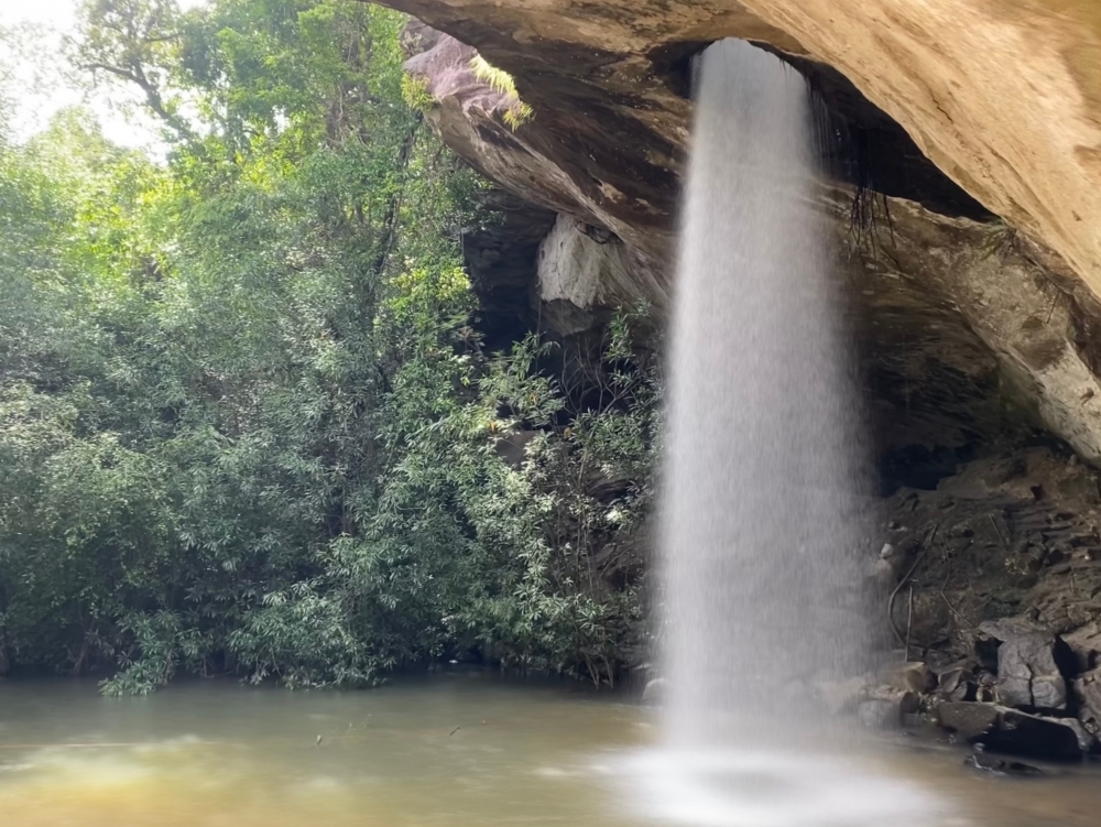 ความสวยงามที่น่าอัศจรรย์ของธรรมชาติที่สร้างขึ้น เชิญชวนให้ผู้คนได้เข้าไปหลงเสน่ห์และสัมผัส เดอะแก๊งฯ ติดหล่มอยู่กับความสวยงามของธรรมชาติ จนต้องกระตุ้นกันเองว่า ไปต่อ>>กันเถอะ 5555 ไปต่อกันที่น้ำตกแสงจันทร์ หรือน้ำตกลงรู ตั้งอยู่ที่บ้านตั้งอยู่ที่บ้านทุ่งนาเมือง ตำบลนาโพธิ์กลาง อำเภอโขงเจียม น้ำตกแสงจันทร์เป็นน้ำตกขนาดเล็กที่มีมวลน้ำไม่มากนัก แต่มีความสวยงามมาก เพราะธรรมชาติที่รังสรรค์ให้เป็นรูที่เกิดจากการเซาะและการไหลผ่านของน้ำ ทำให้มีการกร่อนของหินเป็นรู ร่องน้ำตกจากด้านบนค่อนข้างสวยงานแต่ก็ซ่อนไปด้วยความน่ากลัว หากใครคิดอุตริไปถ่ายเซลฟี่ใกล้ๆ อาจมีสิ้นโดนกระแสน้ำพัดลงรู อึ๊ยยยย แค่คิดก็เสียวแล้ว