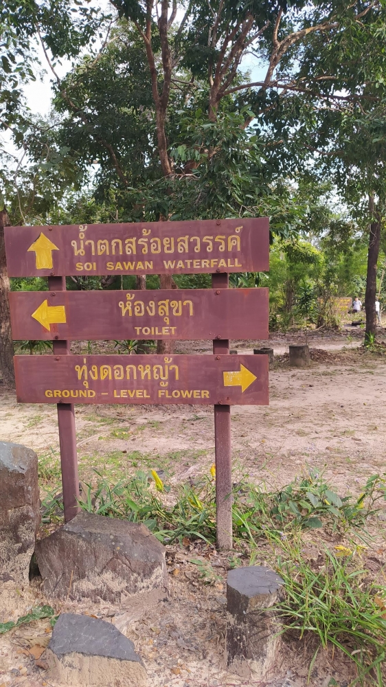 เส้นทางที่ต้องเดินเท้าเข้าไปประมาณ 600 เมตร สองข้างทางมีดอกไม้ป่าขึ้นพอหรอมแหรม เสียดายยยยย !!! ดอกไม้ยังไม่ออกดอก เพราะฝนเพิ่งจะหยุดตก แต่ดอกหญ้าขึ้นเต็มพื้นที่ ก็งดงามไปอีกแบบ เดอะแก๊งฯ เห็นแค่ดอกไม้ป่าเพียงช่อเดียวก็หยุดถ่ายรูปกันอย่างไม่เปลืองฟิล์ม เพราะไม่ได้ใช้ฟิล์มแล้ว 5555