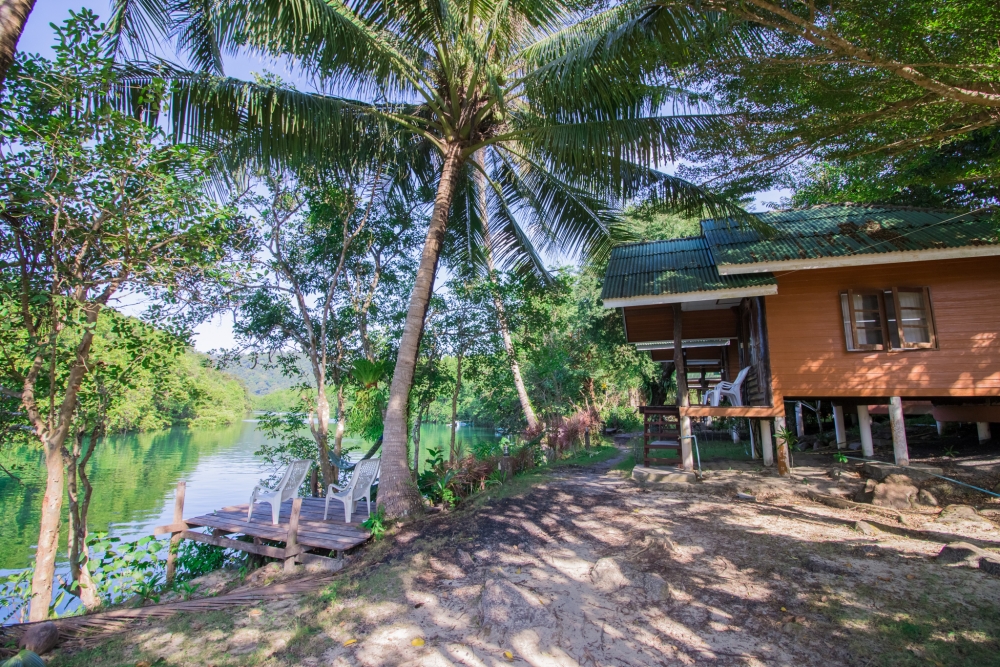 *แนะนำให้ขึ้นของบขส.นะครับเพราะไปอ่านในพันทิปมามีแต่คนแนะนำ แต่เนื่องจากว่าวันที่ผมไปรถรอบดึกของบขส.เต็มหมด เลยเลือกไม่ได้ บอกเลยว่าไม่ค่อยประทับใจเชิดชัยทัวร์เท่าไร สภาพรถถือว่าดีนะ แต่แอร์ไม่เย็นเลย  มาถึงบขส.ประมาณตี4ครึ่งโอ้ แล้วรอบเรือคือ 10.00น. รออีกยาวเลย 555 ที่นั่นจะมีร้านข้าวขายด้วยนะ หาข้าวกินให้เรียบร้อยรอรถมารับ เรียกว่านอนรอกันเลยทีเดียว 5555 รถมารับประมาณ 8.30 น.นั่งรถไปท่าเรืออีกประมาณ 30 นาที ผมแนะนำเลยนะถ้าใครจะไปช่วงเทศกาลหรือวันหยุดหลายๆวันแนะนำให้จองก่อนไปนะครับ สำหรับที่ผมไปทางที่พักจัดแจงจองให้หมดเลยครับเพราะผมจองเป็นแพ็คเกจของทางที่พักรวมเรือไป-กลับ แล้วก็ควรไปถึงท่าเรือก่อนอย่างน้อยสักครึ่งชั่วโมงนะครับ สำหรับเรือเกาะกูดนั้นจะมี 3 บริษัทใหญ่ๆ จะมีเป็นเรือเร็วกับเรือเฟอรี่ มีเรือบริษัทบุญศิริ ราคา เที่ยวละ 500 บาทแต่ของบุญศิริจะมีรถทัวร์รอบดึกด้วยรวมเรือไปกลับ ขึ้นรถที่ถนนข้าวสารแต่ไม่แน่ใจราคาเท่าไร,เกาะกูดเอกซ์เพรส 350 ต่อเที่ยว , เกาะกูดปริ๊นเซส ทริปนี้ทางที่พักจองให้เป็นของบริษัทเกาะกูดปริ๊นเซส ราคาเที่ยวล่ะ 350 ไปกลับ 700 บาท เป็นเรือใหญ่บรรทุกคนได้ประมาณ 300 คนพอดีเห็นป้ายที่เค้าเขียน 5555 จะมีที่นั่งที่เป็นแอร์ซะส่วนมาก ส่วนคนที่กลัวเมาเรือทางด้านหลังจะเป็นแอร์ธรรมชาติ คือผมกลัวเมาเลยไปนั่งด้านหลั่ง ขากลับลองนั่งด้านในปรากฎว่าไม่เมาแถมแอร์เย็นหลับสบายเลย ผมลืมบอกวันผมไปก่อนเรือจะออกตรงท่าเรือเจอปลาโลมาว่ายเล่นน้ำใกล้ๆฝั่งหลายตัวเลย ตื่นเต้นมากพึ่งเคยเห็น 5555 ใช้เวลาประมาณ 2 ชั่วโมงถึงท่าเรือ จากนั้นจะมีรถสองแถวไปส่งยังที่พักใช้เวลาอีกประมาณ 30 นาที ตอนขั้นเรือไม่อวกแต่จะมาอวกตอนขึ้นสองแถว มันเป็นเส้นทางขึ้นลงเขามีทางโค้งตลอดแถมรถขับซิ่งด้วย ดีนะที่มีหมากฝรั่งช่วยไม่งั้นอวกพุ่งแน่ๆ 5555 มาถึงที่พักประมาณบ่ายโมงกว่าๆได้ หิวมากดีที่ว่าที่พักตรงนี้เป็นร้านอาหารด้วยดีงาม บรรยากาศทีพักแมงโกรฟบังกะโล ผมจองในโปรโมชั่นแพ็คเกจ 3 วัน 2 คืน 2700 บาท/คน เป็นที่พักโซนด้านหลัง ถ้าไปคนเดียวคิดเพิ่ม 1000 บาท รวมค่าเรือไปกลับ มีมอไซด์ให้ 1 คัน กิจกรรมพายเรือคายัก และกิจกรรมดำน้ำ ส่วนที่พักโซนด้านหน้าก็จะแพงกว่านี้หน่อย ที่พักไม่ติดทะเลแต่ติดคลองเจ้า สามารถพายเรือคายักออกไปทะเล พายออกไปน้ำตกคลองเจ้าได้ อยู่ห่างจากทะเลประมาณ 300 เมตร ชมพระอาทิตย์ตกดินตรงหาดนี้ได้ด้วย ดีงามไปอีก ที่พักโซนด้านหน้า อยู่ติดริมน้ำ