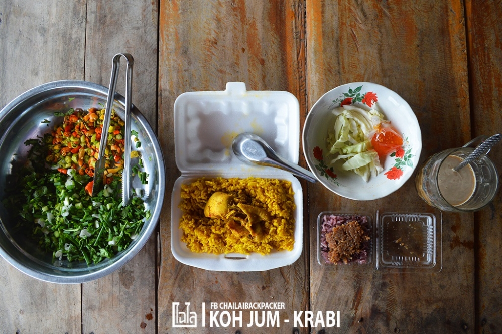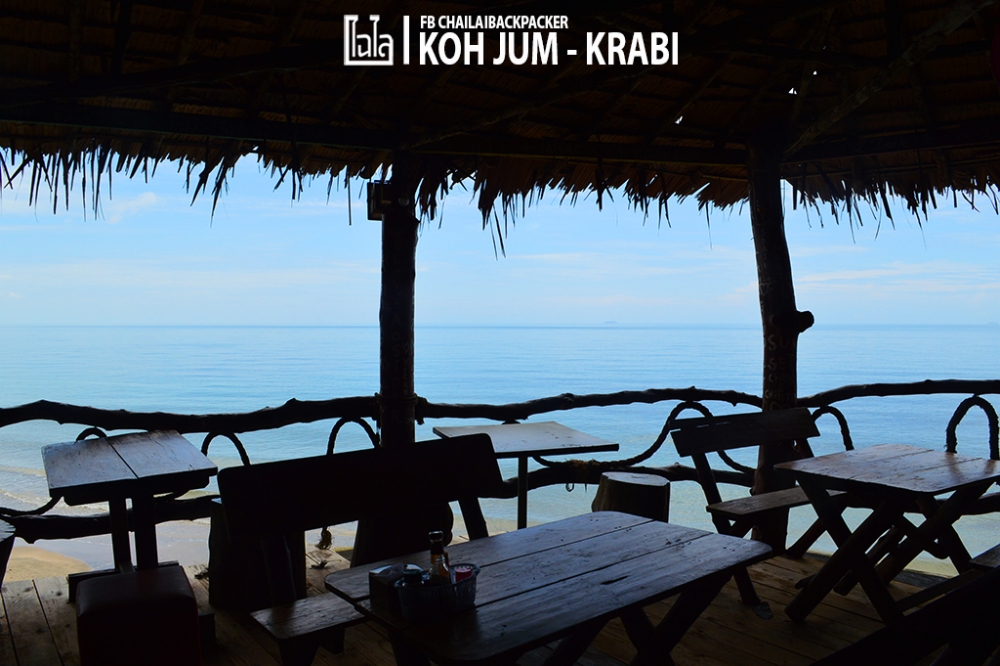 เริ่มเข้าช่วงสาย.. รู้สึกชักจะหิว อาหารเช้าของที่พักก็ไม่ได้กิน ก็เลยต้องหาอะไรใส่ท้องสักหน่อย ซึ่งอันที่จริง.. บนเกาะจำมีร้านอาหารแนะนำ ที่ต้องไปกิน อย่าง ร้านเกาะจำซีฟู๊ด แต่พอดีอยากจะประหยัดงบ ประกอบกับ อยากหาอะไรกินแบบชาวบ้านๆ สักหน่อย ก็เลยวนๆ รถหาดู ซึ่งร้านส่วนใหญ่ ร้านขายอาหารเช้าเขาก็เปิดขายเฉพาะช่วงเช้า จนจะเก็บของกันหมดแล้ว พอดีมาเจอร้านนึงยังเปิดอยู่ก็เลยได้จอดรถ แวะลงมานั่งกิน โดยกะว่าจะรีบกิน แล้วรีบไปต่อ แต่.. คุยกับ มะ เจ้าของร้านเพลินไปหน่อย ก็เลยได้นั่งยาวเลย.. มะ บอกว่า.. เมื่อก่อนสักสิบปีที่แล้ว เกาะจำ ยังไม่ได้เจริญขนาดนี้ ถนนหนทางดีๆ ไฟฟ้าต่างๆ ก็เพิ่งมีมาไม่นาน ช่วงหลัง..มานี้ นักท่องเที่ยว มีเยอะขึ้น แต่ก็ยังน้อย เมื่อเทียบกับ สถานที่อื่นๆ เมื่อนักท่องเที่ยวเริ่มมีมากขึ้น ชาวบ้านบางส่วนก็หันมาทำที่พัก หรือ โฮมสเตย์ ไว้รองรับ