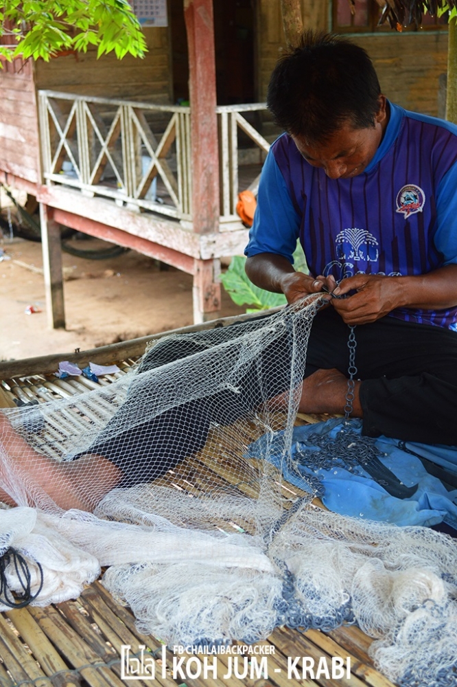 ชาวประมงกำลังซ่อมแซมเครื่องมือหาเลี้ยงชีพ