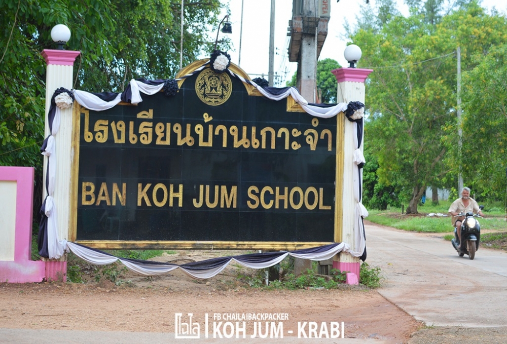 จากนั้น.. ลงไปถึงหมู่บ้านใต้สุดของเกาะ ที่ บ้านเกาะจำ ผ่าน โรงเรียนบ้านเกาะจำ