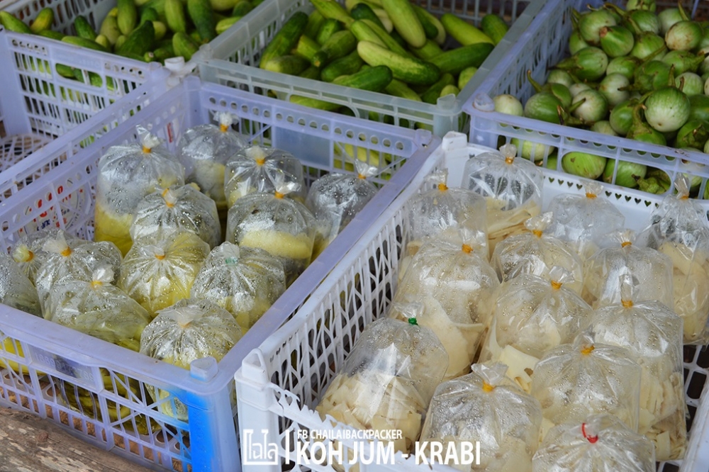เจอตลาดขายของสด พวกผัก และผลไม้ ซึ่งบางส่วนไม่ได้มีปลูกบนเกาะ ต้องรับมาจากตลาดเหนือคลอง เพื่อนำมาขายต่ออีกที