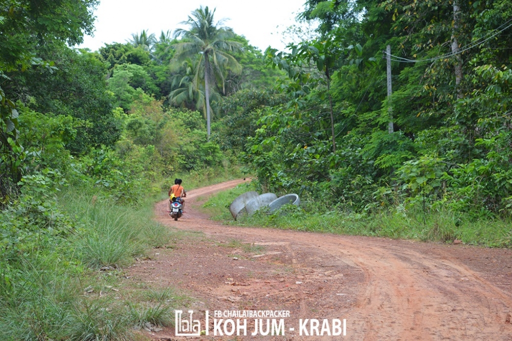 อิ่มแล้วก็ไปกันต่อ.. แว๊นซ์ไป หมู่บ้านเหนือสุดของเกาะกันบ้างที่ บ้านเกาะปู ซึ่ง เกาะจำ กับ เกาะปู ก็อยู่บนเกาะเดียวกันนี่แหละครับ แต่แยกตามชื่อหมู่บ้านเท่านั้น ถนนหนทางจากทางคอนกรีตอย่างดี พอเข้าเขต บ้านเกาะปู ทางจะเป็นถนนลูกรัง ซึ่งต้องใช้ความระมัดระวังพอสมควร สองข้างทาง ผ่านทั้งป่า และ สวนยางฯ ยิ่งเข้าไปลึก บรรยากาศก็ยิ่งเงียบได้ใจจริงๆ