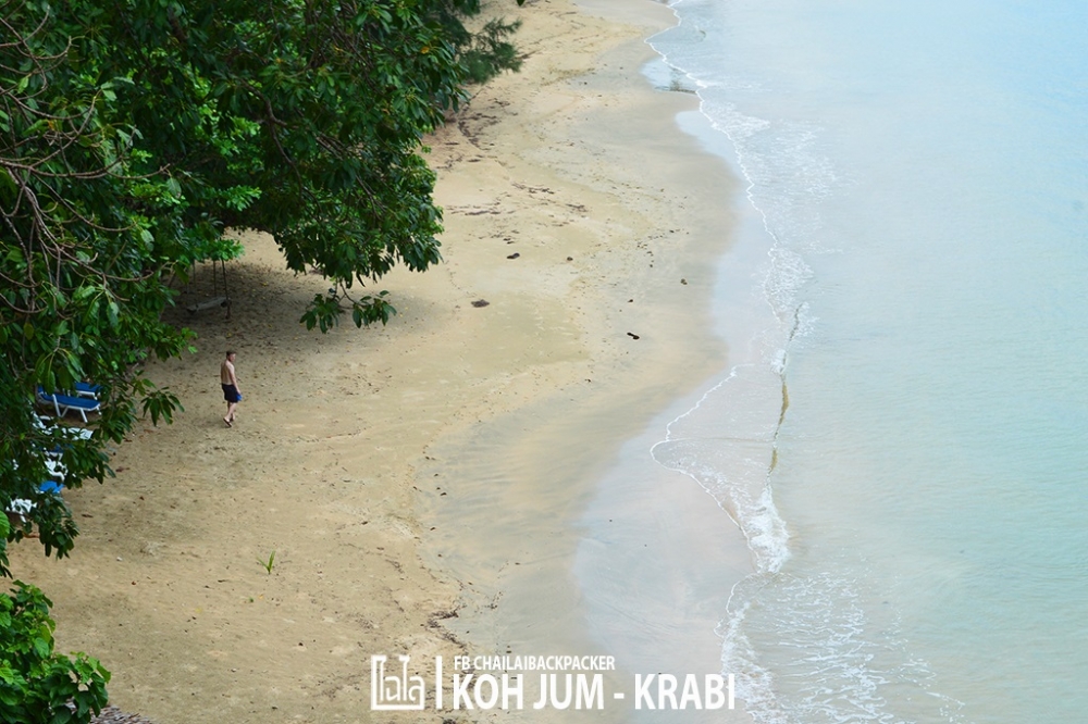 มองไปที่ชายหาดด้านล่าง แอบมองเห็น ฝรั่งหนุ่มนายหนึ่ง เดินเล่นอยู่ชายหาด เตรียมจะลงไปเล่นน้ำทะเล ซึ่งก็อยากลงไปเล่นบ้าง ท่าทางคงจะเย็นสบายดี แต่ไม่รู้ทำไม.. ตอนนี้ ความขี้เกียจ มันดันสิงร่างอยู่ ขี้เกียจแม้กระทั่งไม่ลงไปทานอาหารเช้า ขอนั่งเล่นอยู่ตรงนี้ไปสักพักดีกว่า ทริปนี้เน้นพักผ่อน ไม่ต้องออกแรงมากก็ได้ 55+