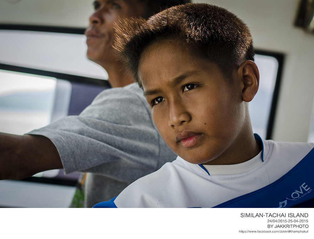 เราเดินทางไปยังเกาะสิมิรันโดยเวลาร่วมประมาณหนึ่งชั่วโมงครึ่งนะครับ วันนี้กับตันเเละผู้ช่วยซึ่งเป็นลูกชายของเขาบอกกับเราว่าวันนี้คลื่นน้อย สบายยยย 5555+ โชคดีครับอาการเมาเรือไม่ถามหาเลย