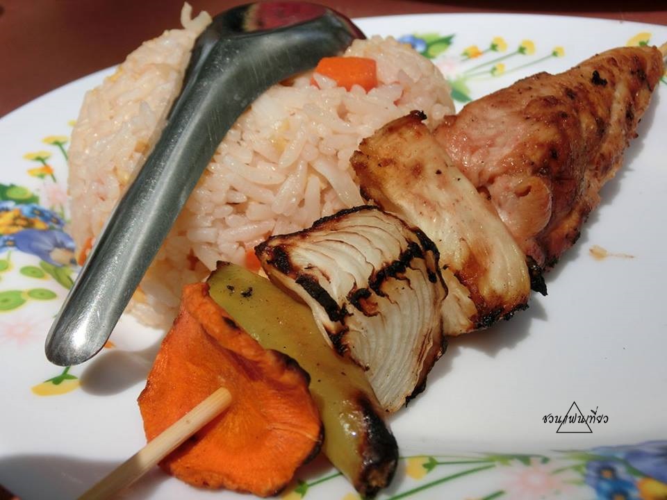 อาหารเที่ยงที่ทางแชร์บ๊วยได้เตรียมไว้ให้พวกเรามื้อนี้ก็จะเป็นข้าวผัดกับบาร์บีคิวไก่ค่ะ^^