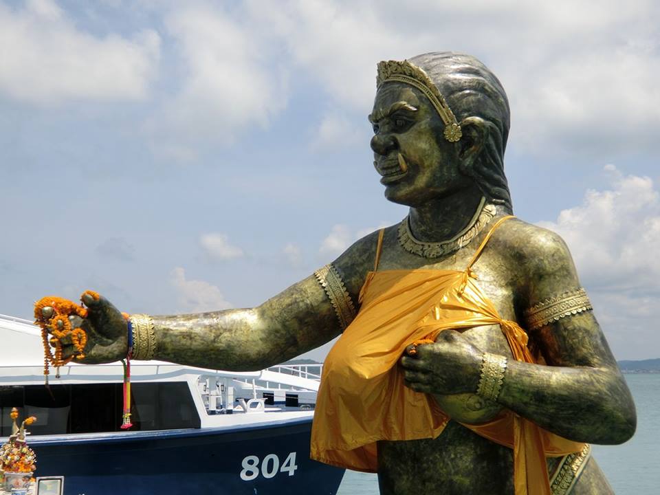 เรือรอบที่เรานั่งมาออกตอน9โมงนิดๆระยะเวลาการนั่งเรือจากฝั่งท่าเรือหน้าบ้านมาถึงเกาะเสม็ดก็ประมาณ40นาทีได้ค่ะ ไกลเอาเรื่องเหมือนกัน สัญลักษ์ที่บ่งบอกว่าเรามาถึงเกาะเสม็ดแล้วก็คือรูปปั้นนางผีเสื้อสมุทรตัวละครจากวรรณคดีเรื่องสุดสาครนั่นเองค่ะตัวใหญ่มากๆสามารถมองเห็นได้ตั้งแต่เรือเราอยู่กลางทะเลเลยค่ะ5555