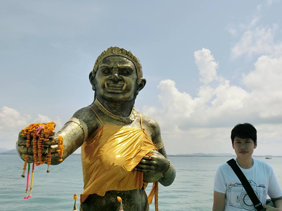 เอาล่ะได้เวลาพวกเราทั้ง3ต้องกลับกันแล้ว เราจัดการเข้าไปเก็บข้าวของเครื่องใช้ส่วนตัวแล้วเช็คเอ้าท์ลาคุณป้าเจ้าของที่พักแต่ก่อนกลับเราก็ไม่ลืมที่จะแวะแชะภาพคู่กับสัญลักษณ์บนเกาะสมุทรอย่างนางยักษ์ผีเสื้อสมุทรที่ตั้งอยู่ทางท่าเรือเกาะเสม็ด