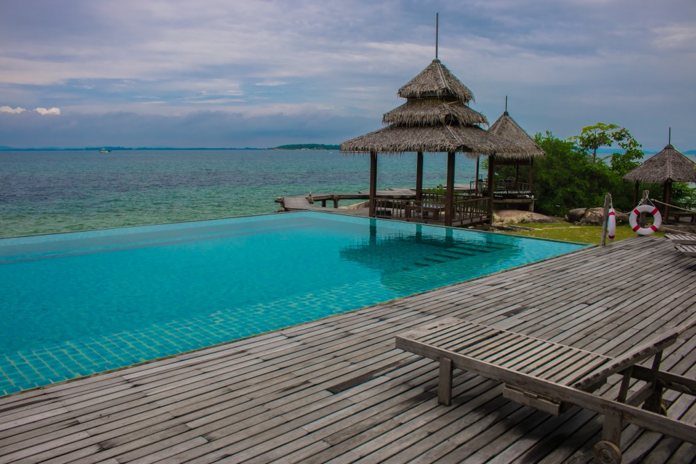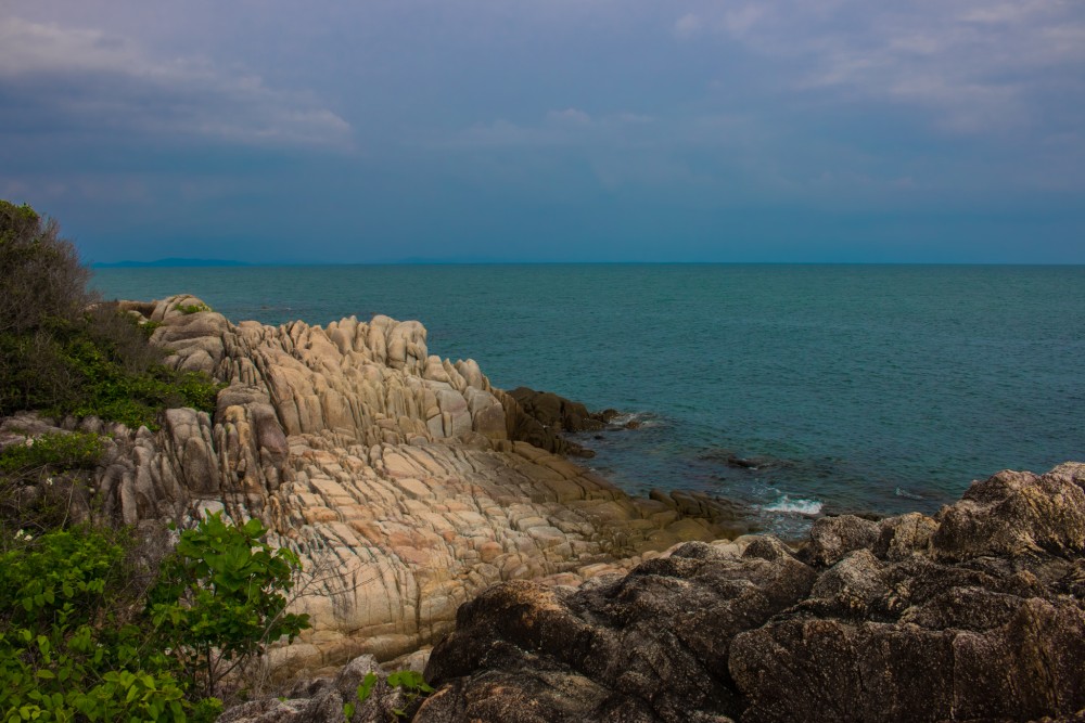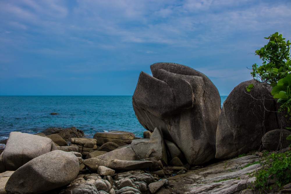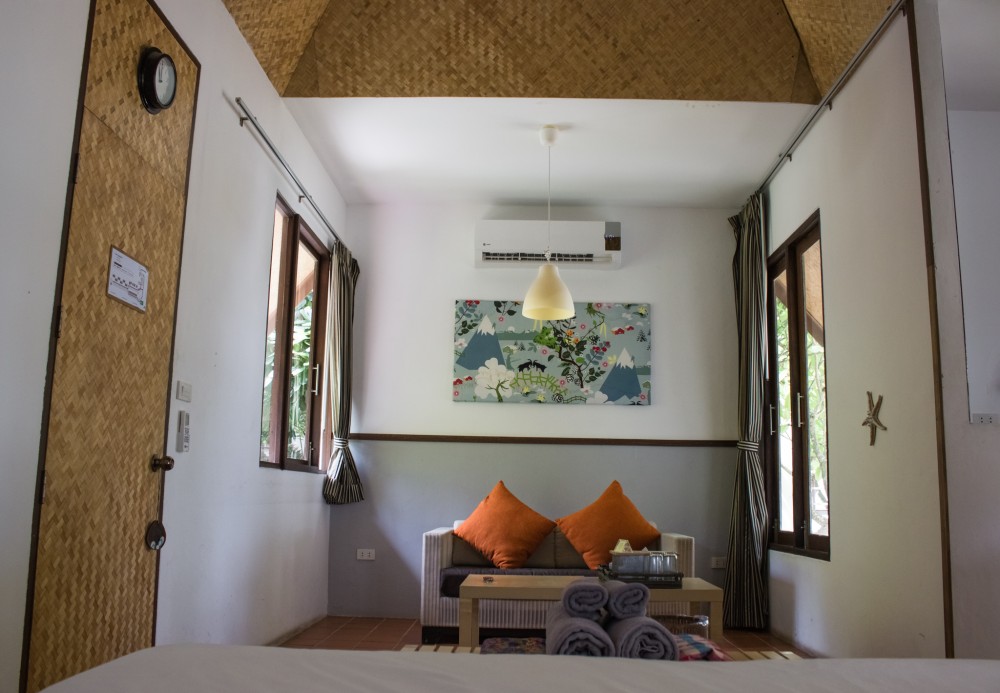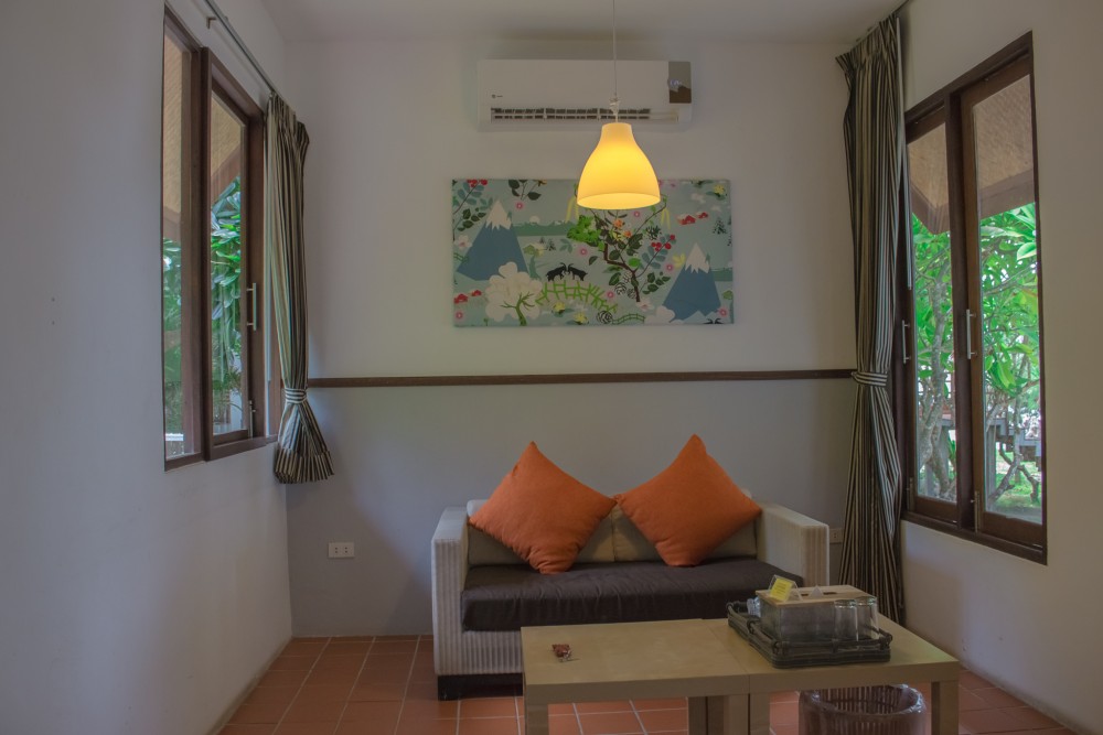 จากรูปทางด้านซ้ายของรูปจะเป็นโซนวิลล่าJ เป็นโซนติดทะเล เปิดประตูข้างหลังห้องพักไปสามารถลงทะเลได้เลย ส่วนด้านขวาจะเป็นโซนวิลล่าBซึ่งจะไม่ติดทะเลแต่ก็ไม่ได้อยู่ห่างทะเลมากนัก ราคาก็จะถูกกว่าโซน J นี่แหละฮะหน้าห้องของเรา เข้าไปดูภายในห้องกันดีกว่าว่าเป็นยังไงบ้าง นี่กุญแจห้องเรา เป็นงายย เตียงนอนของเรา นุ่มมาก นอนแล้วหลับปุ๋ยยย 555 คือแบบห้องกว้างมาก มีโซนที่เป็นเตียงนอน  โซนนั่งเล่นมีโซฟา ถึงแม้ภายในห้องอาจจะไม่มีทีวี ตู้เย็นแต่ว่าโดยรวมแล้ว ไม่มีก็ไม่จำเป็นเลย  ส่วนต่อมาจะเป็นส่วนของห้องแต่งตัว อ่างล้างหน้า มีแปรงสีฟัน ยาสีฟัน สบู่เหลวล้างมือ มีโลชั่นทาผิว ที่โกนหนวด มีที่เป่าผมสำหรับผู้หญิงด้วย มีอุปกรณ์ครบทุกอย่าง ห้องอาบน้ำ ส่วนห้องส้วมก็จะแยกเป็นอีกห้องนึง ส่วนด้านหลังเปิดประตูไป มีบันไดสามารถลงไปเล่นน้ำทะเลได้เลย ภาพทางด้านหลังก็จะประมาณนี้ครับ ส่วนที่ติดทะเลจะเป็นโซนวิลล่า J ทั้งหมด นี่ล่ะความฟินมันอยู่ตรงนี้ คือแบบเปิดประตูลงมาจากห้องเห็นทะเลเลย แล้วยังมีกระท่อมสะพานไม้ให้นั่งชิวๆอีกด้วย อยากจะเล่นน้ำตอนไหนก็ได้ มีความเป็นส่วนตัวแบบสุดๆ นี่ล่ะความฟินมันอยู่ตรงนี้ คือแบบเปิดประตูลงมาจากห้องเห็นทะเลเลย แล้วยังมีกระท่อมสะพานไม้ให้นั่งชิวๆอีกด้วย อยากจะเล่นน้ำตอนไหนก็ได้ มีความเป็นส่วนตัวแบบสุดๆ มีฝูงปลาน้อยด้วย นี่ไงเจ้าเจอเจ้าถิ่นแล้วนกยูง มันรำแพนให้ดูด้วย เก็บกระเป๋าไว้ห้องเสร็จ เรามาสำรวจรอบเกาะกันดีกว่าว่ามีอะไรบ้าง หาดตรงนี้เป็นส่วนตัวมาก อยู่ท้ายสุดเลย มีห้องพักด้วยไม่แน่ใจว่าเป็นโซนอะไร เห็นมีคนพักอยู่เลยไม่ได้ถ่ายรูปมา เดินเรื่อยๆ มาสดุดตาให้หินที่อยู่ในทะเลก้อนนี้แหละ เอ๊ะมันเหมือนอะไรหว่า 555 ลองจิตนาการดูว่ามันเหมือนอะไร อยากลองถ่ายแบบอาร์ตๆดู กุญแจเกือบไปกะน้ำเพราะรูปนี้แหละ 5555 ป่ะเดินป่ากันต่อ เพิ่งเดินมาได้นิดเดียวเอง ลุยยยย เดินตามทาง ตามลูกศรไปเรื่อยๆ ด้านหลังของเกาะแทบจะไม่มีหาดทรายเลย ส่วนใหญ่จะมีแต่กองหิน มองดูก็สวยไปอีกแบบ เกาะนี้สามารถตกปลาได้นะครับ ใครจะพกเบ็ดมาก็ได้ตามสบายเลยครับ ผมว่าเกาะนี้ยังสมบูรณ์อยู่พอสมควรเลยมีทั้งต้นไม้ใหญ่ ต้นไม้ป่า พืชพรรณธรรมชาติอีกมากมาย ผมเกาะนี้หินรูปร่างแปลกๆเยอะนะ ดูคลาสสิคไปอีกแบบ ลานหินตรงนี้มีชื่อด้วยนะ เป็นลานหินขนมปังกับกองหินโขลงช้าง นี่ไงมีป้ายชื่อบอกด้วย ส่วนใหญ่หาดด้านหลังจะเป็นหิน หินรูปร่างแปลกๆเยอะมาก ภาพระหว่างทาง มีดอกไม้ด้วยหรือดอกหญ้ากฌไม่รู้ 555 มองดูต้นไม