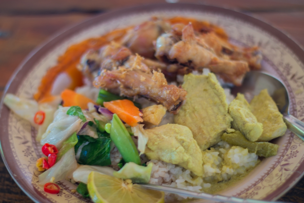เที่ยงแล้วได้เวลากินข้าวกัน เมนูวันนี้แกงเหลือง ผัดผัก แล้วก็ไก่ทอด อร่อยๆ